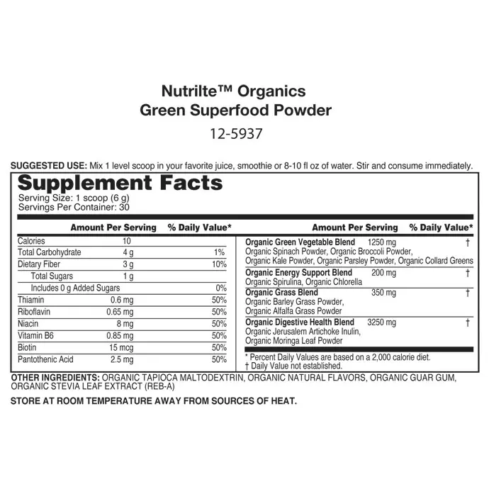 Organic Greens Drink Powder 30 Servings | Nutrilite Green Superfood Blend | Daily Wellness Support