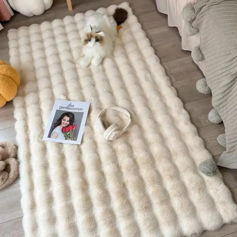 Solid Color Bubble Fluffy Rug, Soft Plush Rug, Non-slip Floor Mat, Decorative Area Rug for Home Living Room Bedroom Bedside