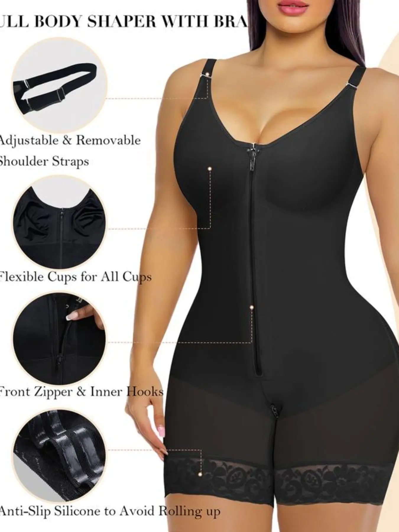 Women’s YIANNA Fajas Colombianas shapewear Tummy Control Butt Lifter Shaper with Zipper Crotch detachable shoulder strap Womenswear