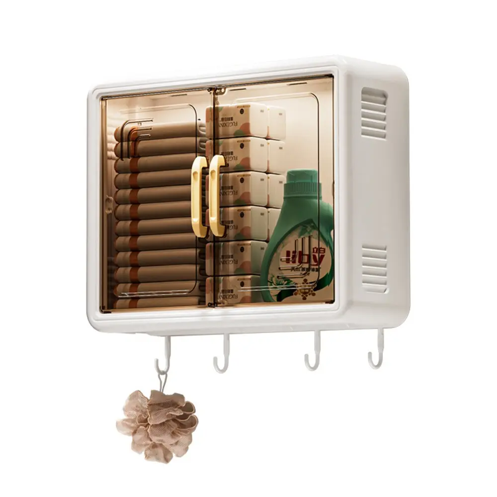Dustproof Wall-mounted Storage Box for Toiletries, Tissue, Shower Gel, Shampoo, etc., No-drill Wall-mounted Storage Box for Bathroom, Toilet, and Shower Room