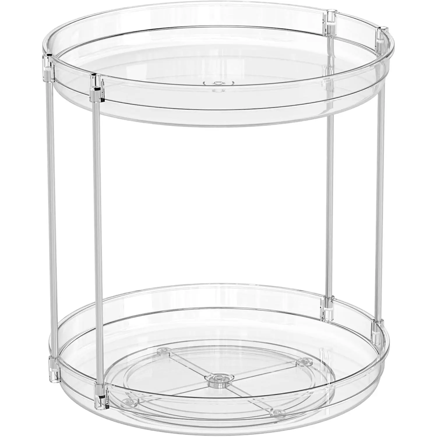 2 Tier Lazy Susan Turntable for Cabinet,Countertop,Pantry,9.5"W Spinning Seasoning Organizer,Double Rotating Kitchen Spice Rack Organizer and Condiments,Medicine,Vitamin Bottle Organizer Carousels,1Pc