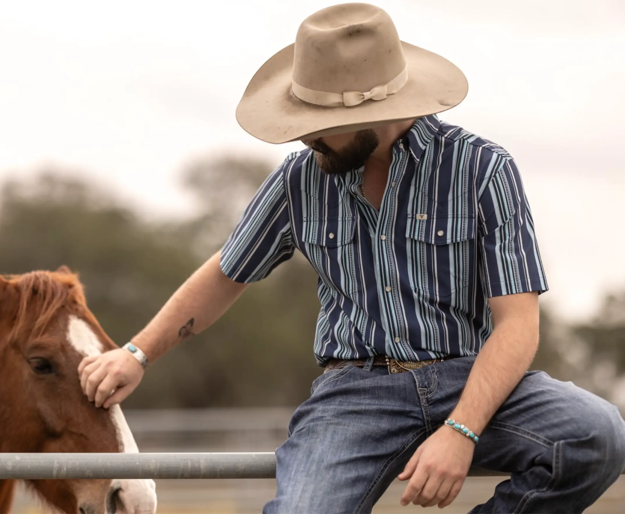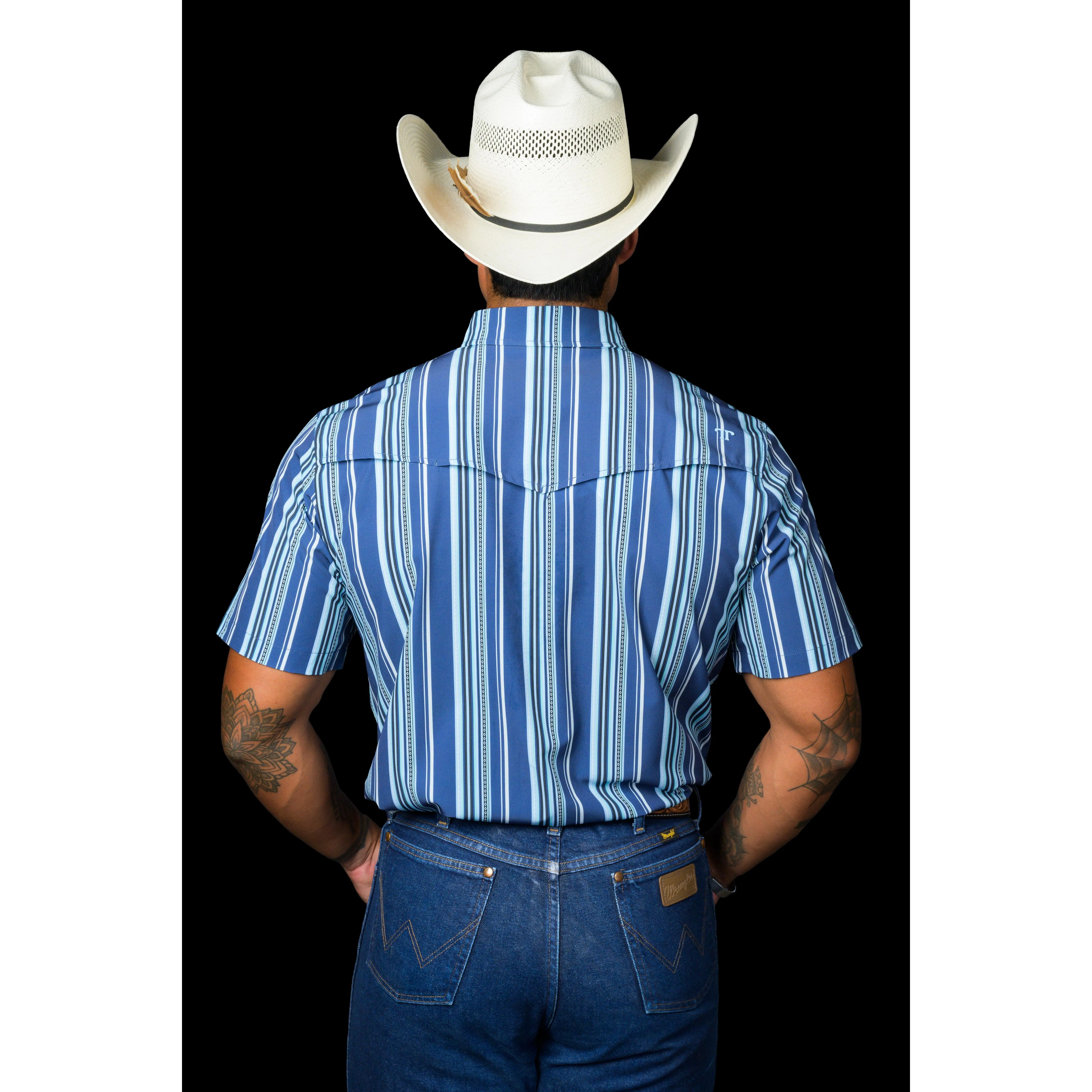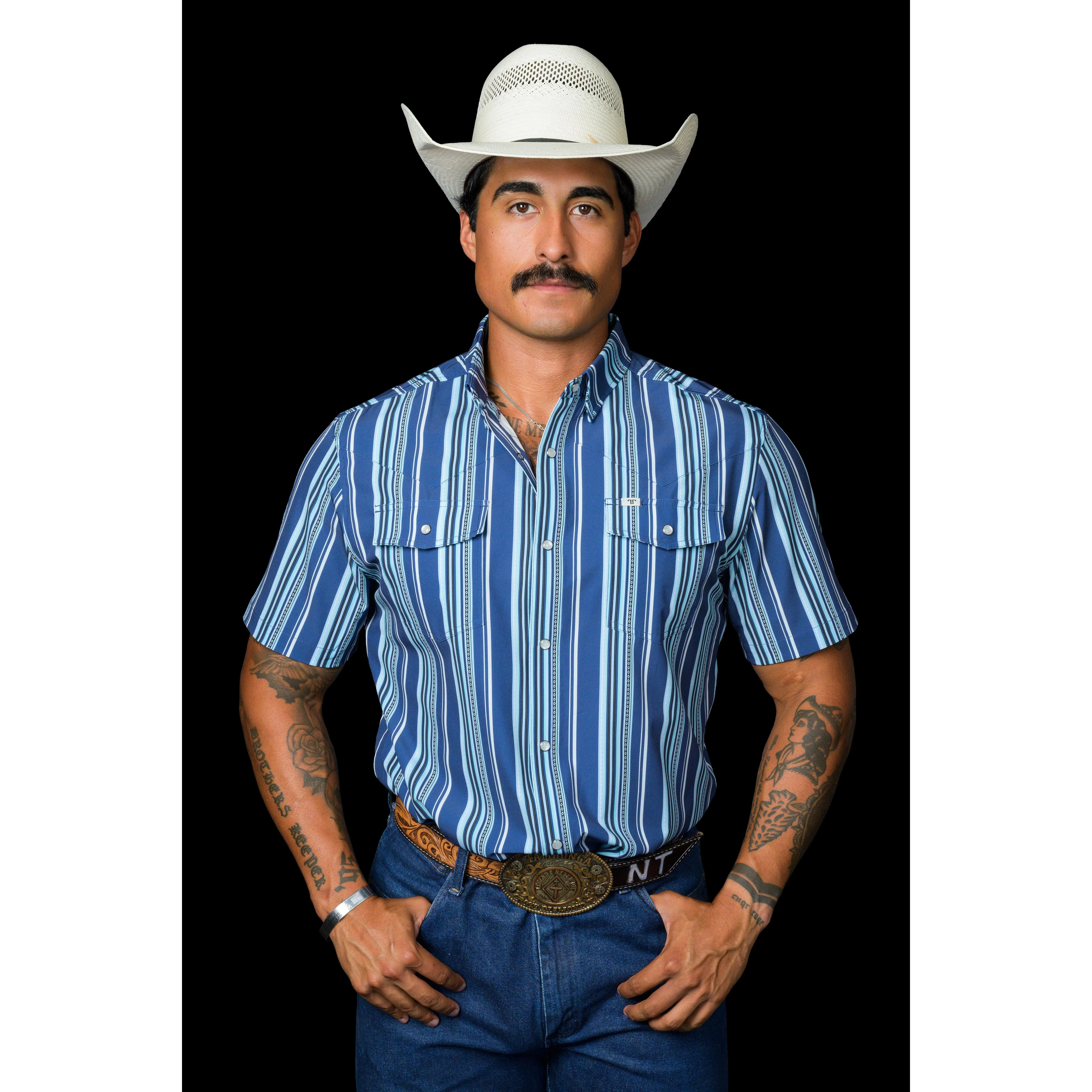 A classic blue stripe with a fresh, modern edge. Balanced and easygoing, this pattern delivers a timeless look that works from day to night. Made with soft, breathable fabric that keeps you cool and comfortable all day long.