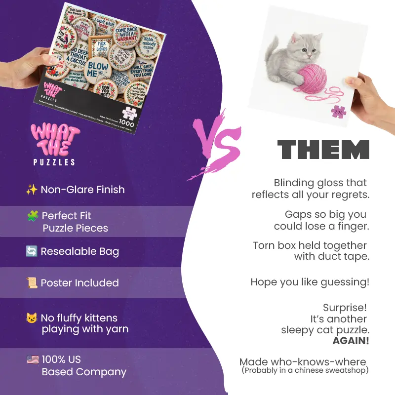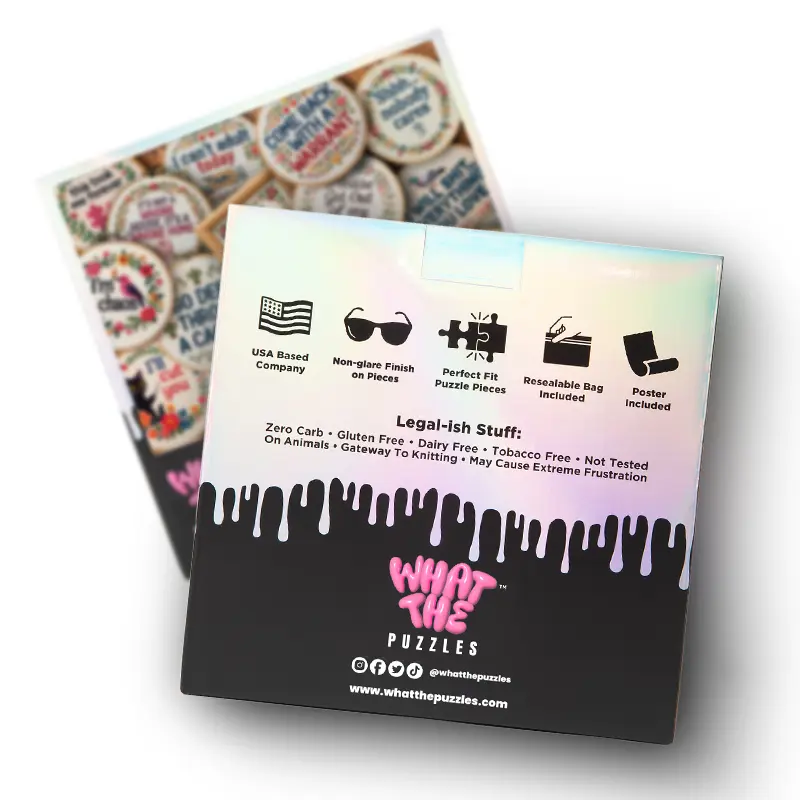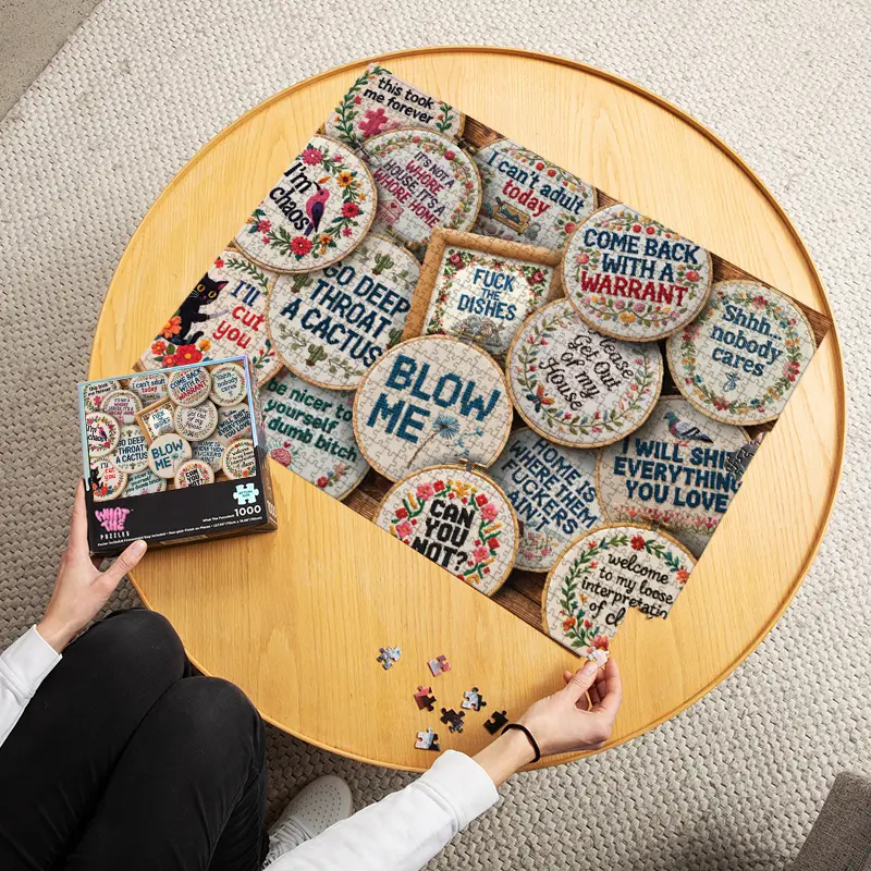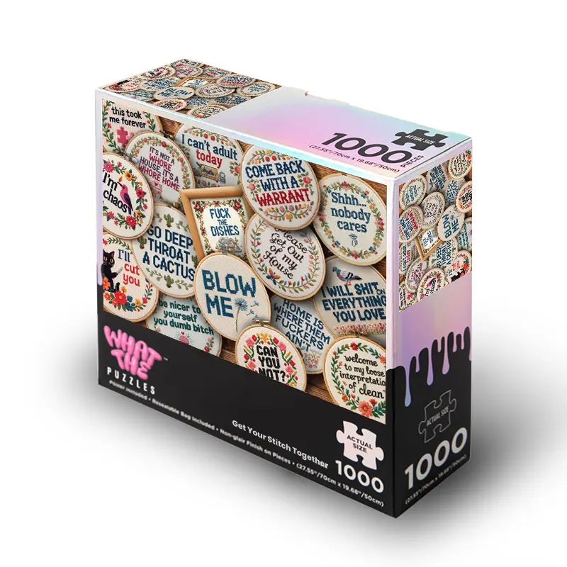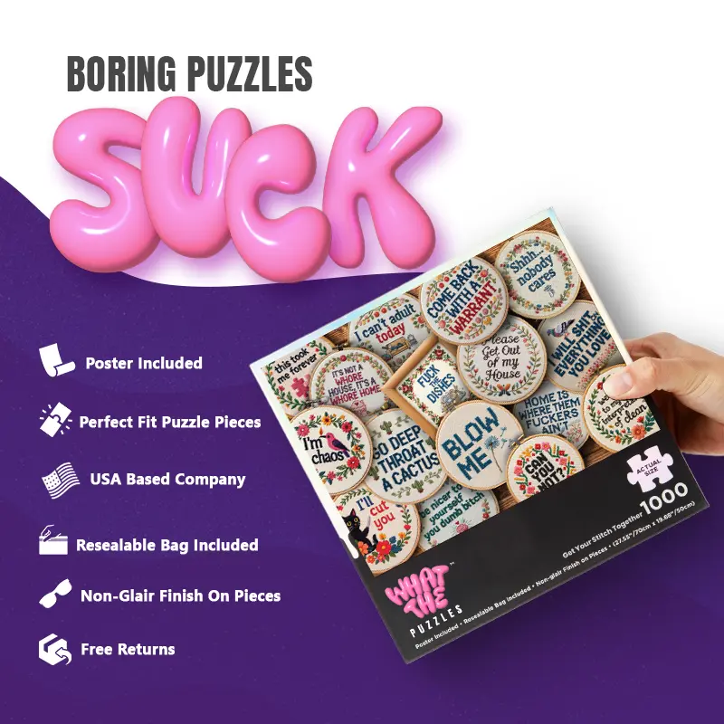 Welcome to Get Your Stitch Together—the only embroidery gallery where the messages are definitely not PG. While most jigsaw puzzles give you boring stock photos, we’re giving you a snarky, floral journey in this 1000 piece puzzle for adults. These puzzles for adults 1000 pieces make the ultimate funny gag gift for the craft-obsessed friend with a foul mouth. Ditch the boring puzzles and turn a standard jigsaw puzzles 1000 pieces challenge into a hilarious masterpiece.