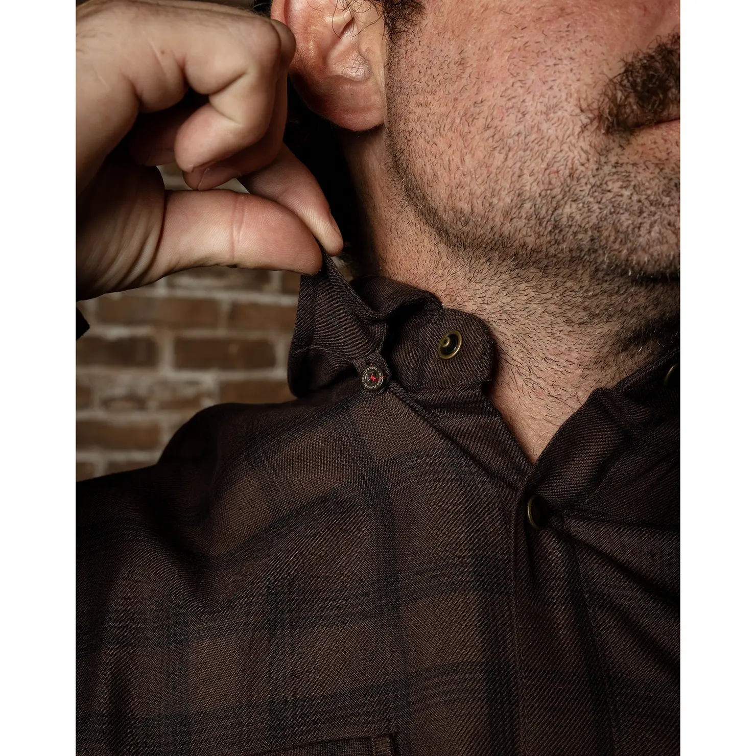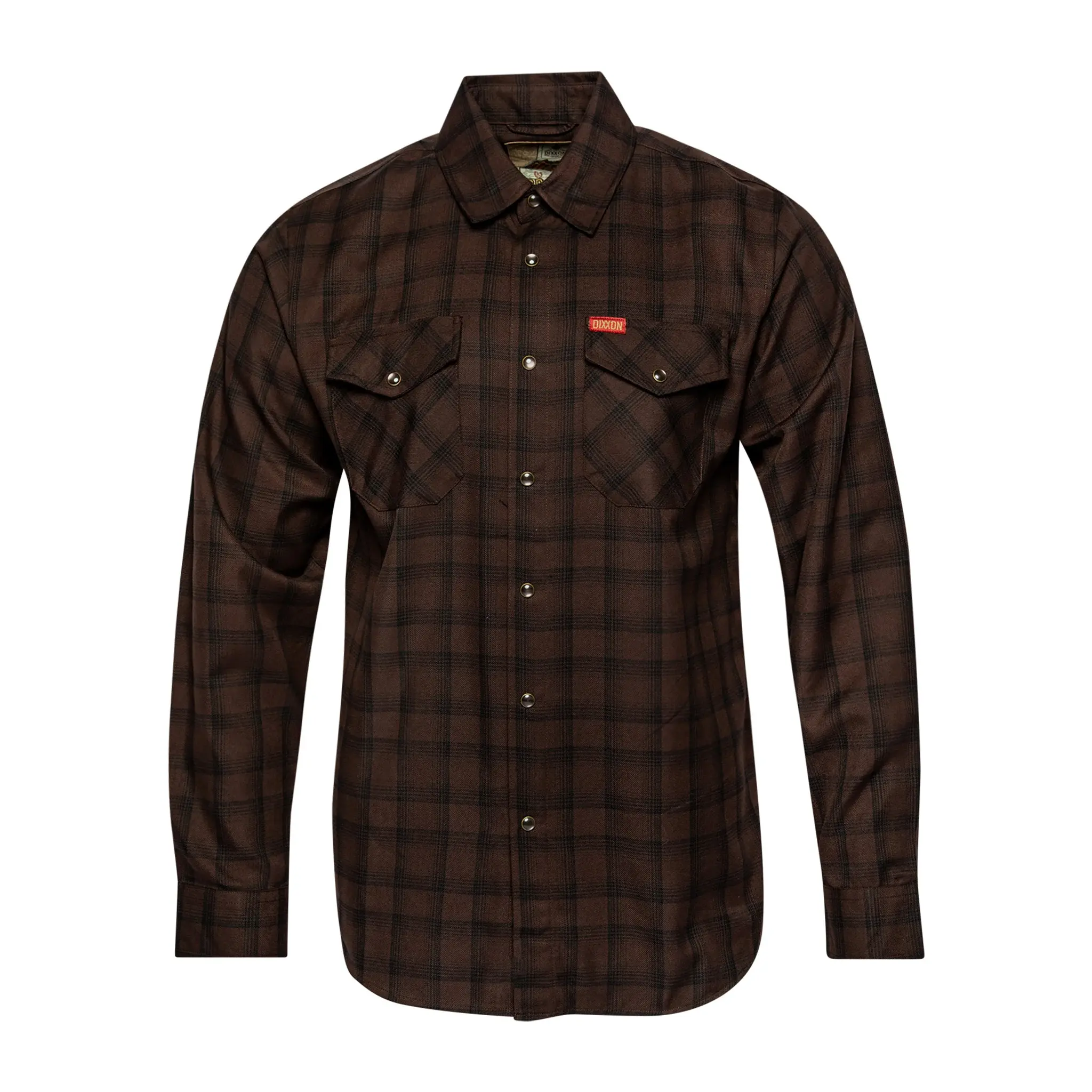 Earthy, rugged, and straight to the point â the Tobacco Flannel brings a warm brown and black palette that feels right at home on the grind. Built tough with our signature D-Tech⢠blend and finished with snaps for quick, get-it-done styling, this oneâs made for the ones who donât overthink it. They just show up and handle it.