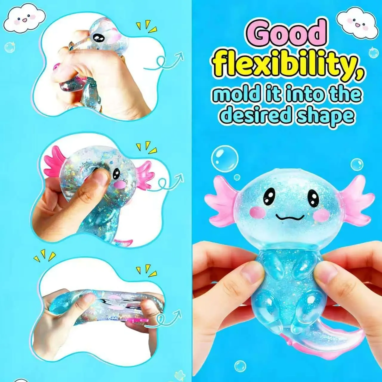 Cute Axolotl Squishies Stress Relief Toy Glitter Fidget Squeeze Toy for Kids Adults