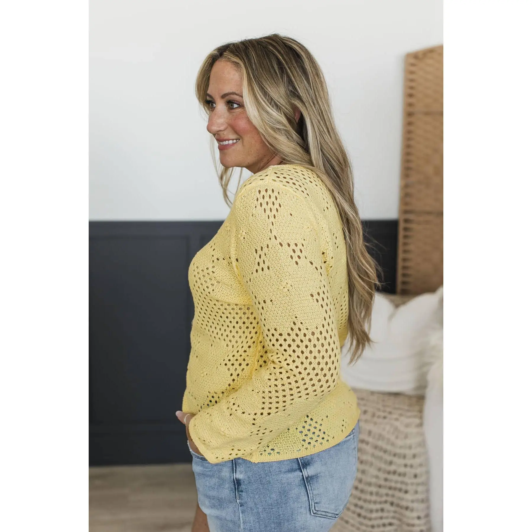 Perfectly Adorable Pointelle Knit Sweater- Light Yellow