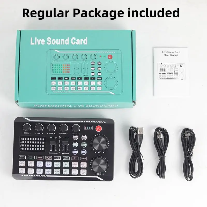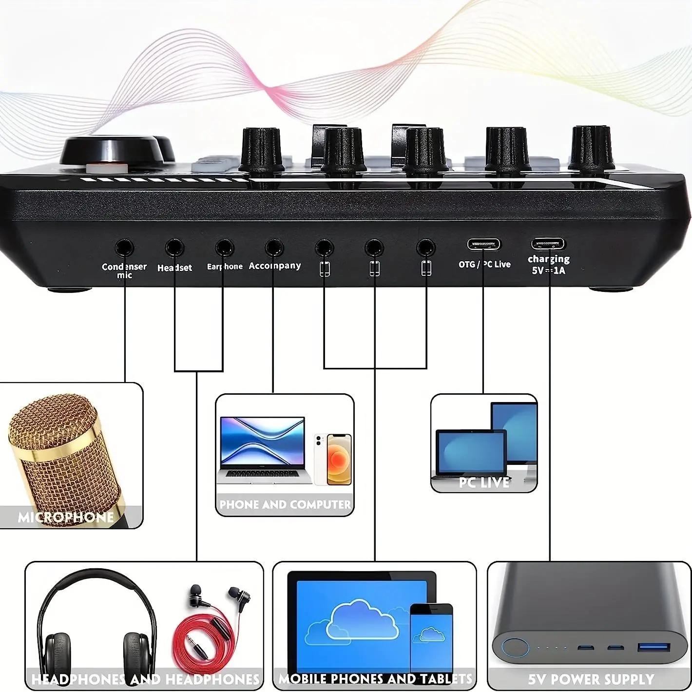 F998 Live Sound Card Audio Mixer, Podcast Audio Interface with DJ Mixer Effects, Voice Changer with Sound Effects for Karaoke Live Streaming Record Gaming