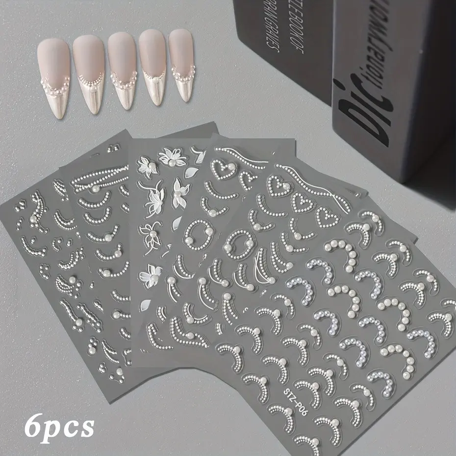 6-Piece 5D Rhinestone Lace Wave Nail Art Stickers, Self-Adhesive Wedding Season Nails, Y2K Princess Style, Ocean Design