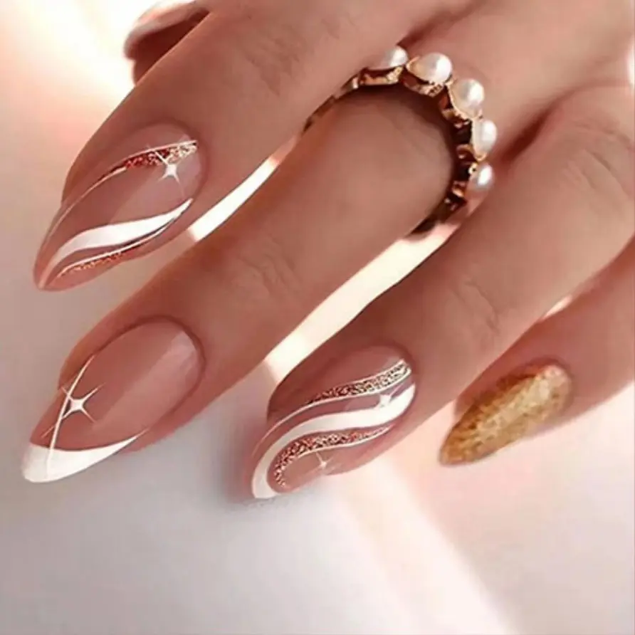 Stiletto Nail Art Set, Glossy Finish, Almond Shape, Medium Length, Clear Base Color, Easy Application, Perfect for Office & Parties