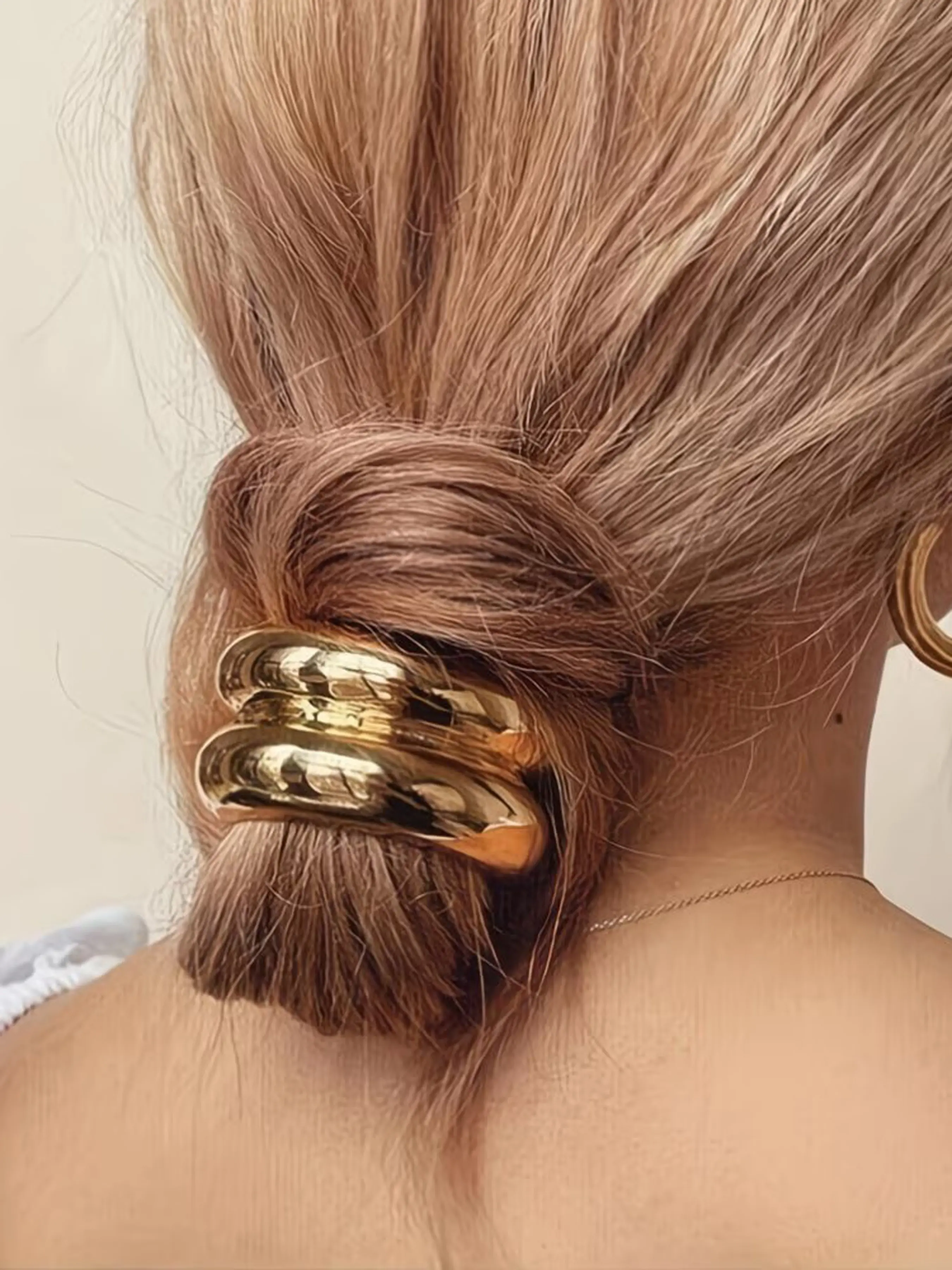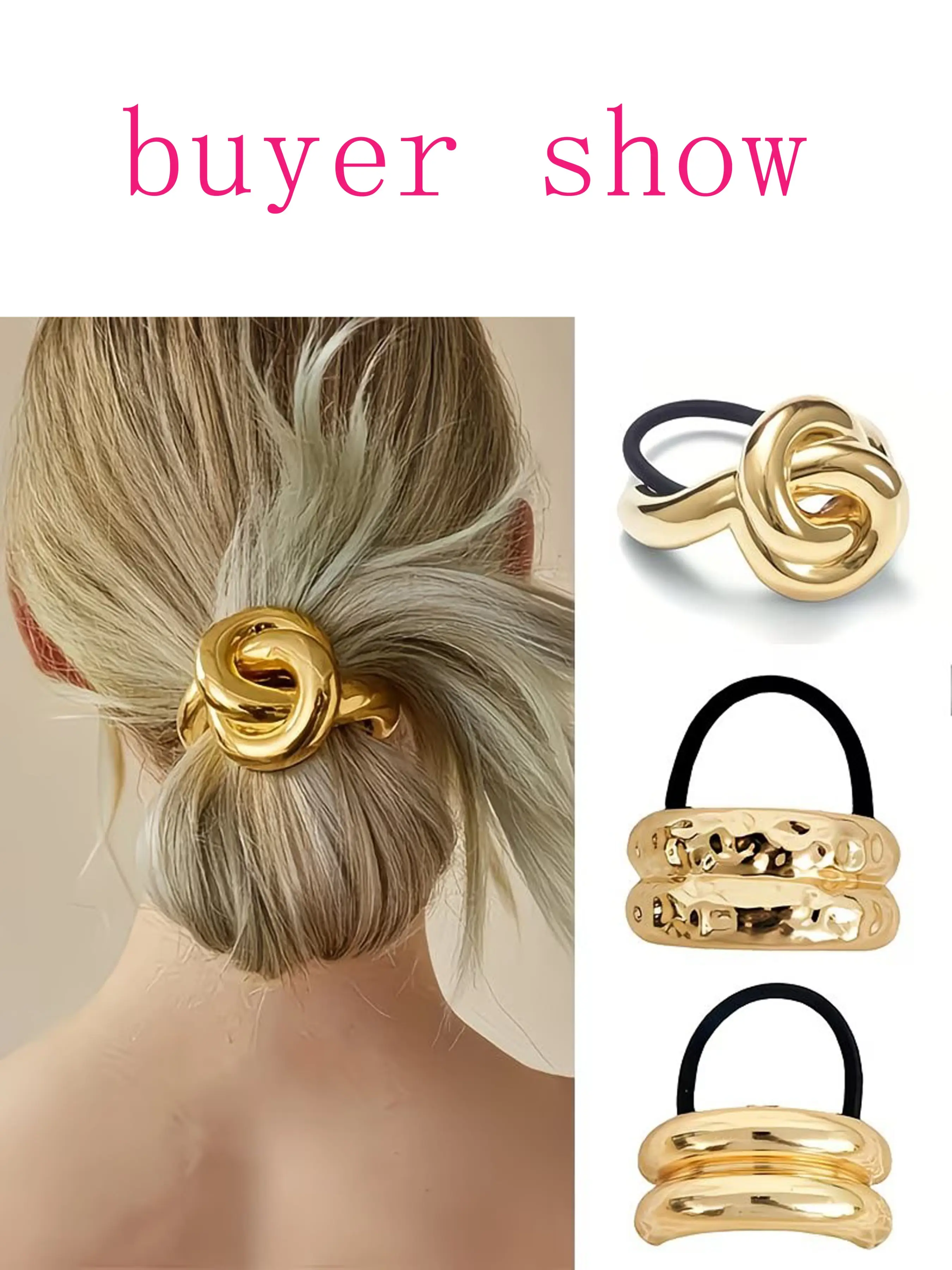 3pcs Arc Metal Hair Ties, High Elasticity Fashion Design, Suitable for Girls Aged 14+, Party and Birthday Gift