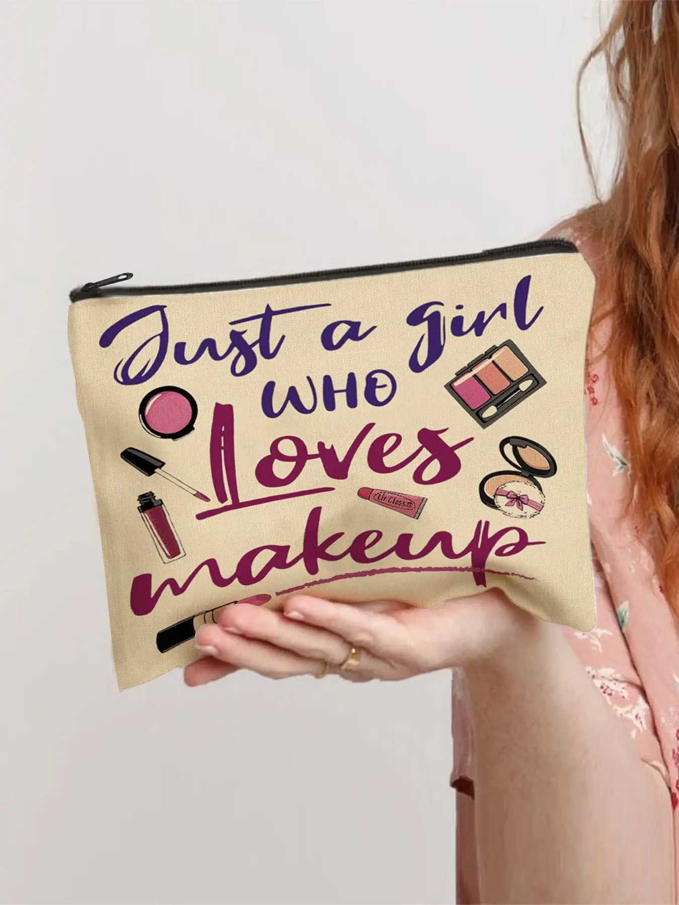 【Unique Design】: Features a fun "Just a Girl Who Loves Makeup" print, adding a touch of personality to your makeup bag.