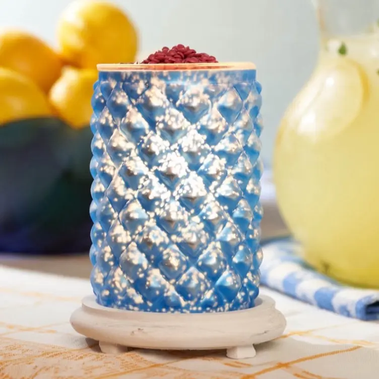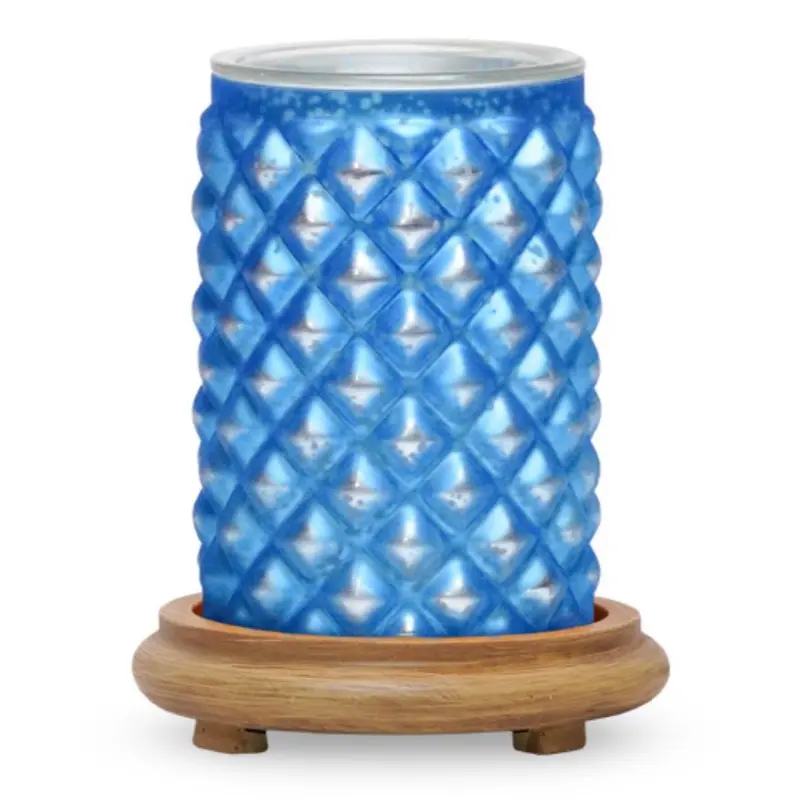 Blue Topaz Simmering Light - Elegant Blue Diamond Patterned Base for Aromatherapy & Fragrance Diffusion