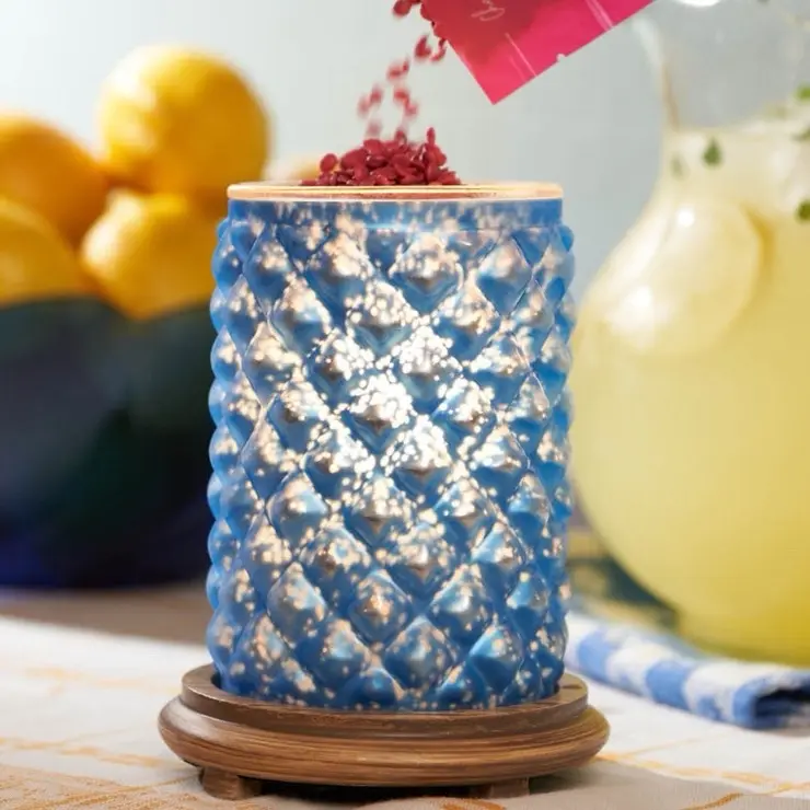 ·Elegant Design: This Blue Topaz Simmering Light features an elegant blue diamond patterned base. Perfect for aromatherapy and fragrance diffusion, it adds a touch of sophistication to any space. 🌟