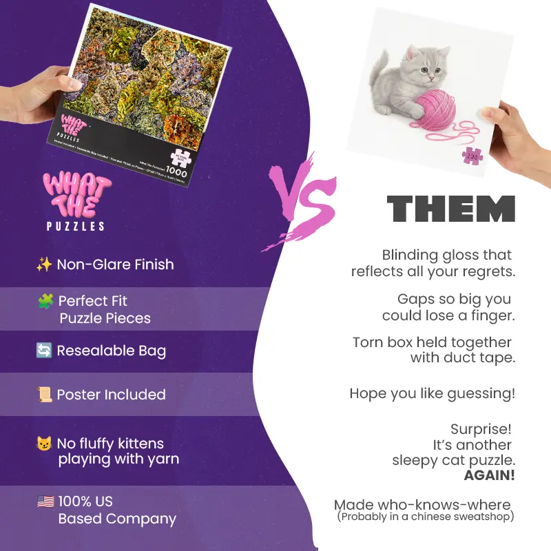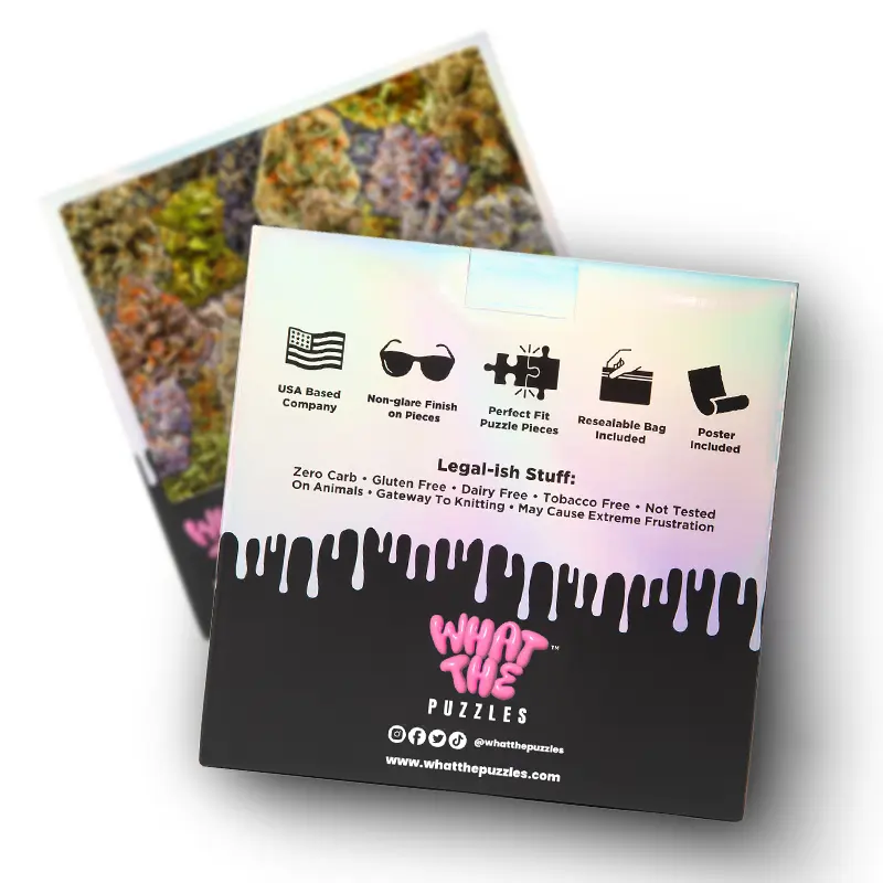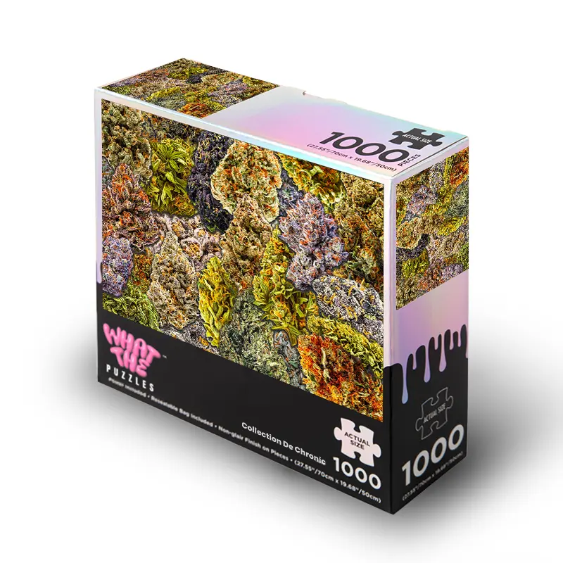 This is Collection De Chronic—the only herb garden that won’t give you the munchies. While most jigsaw puzzles show boring botanical illustrations, we’re giving you a high-definition harvest of sticky buds in this 1000 piece puzzle for adults. These puzzles for adults 1000 pieces make the ultimate funny gag gift for your favorite connoisseur. Ditch the boring puzzles and turn a standard jigsaw puzzles 1000 pieces challenge into a hilarious masterpiece.