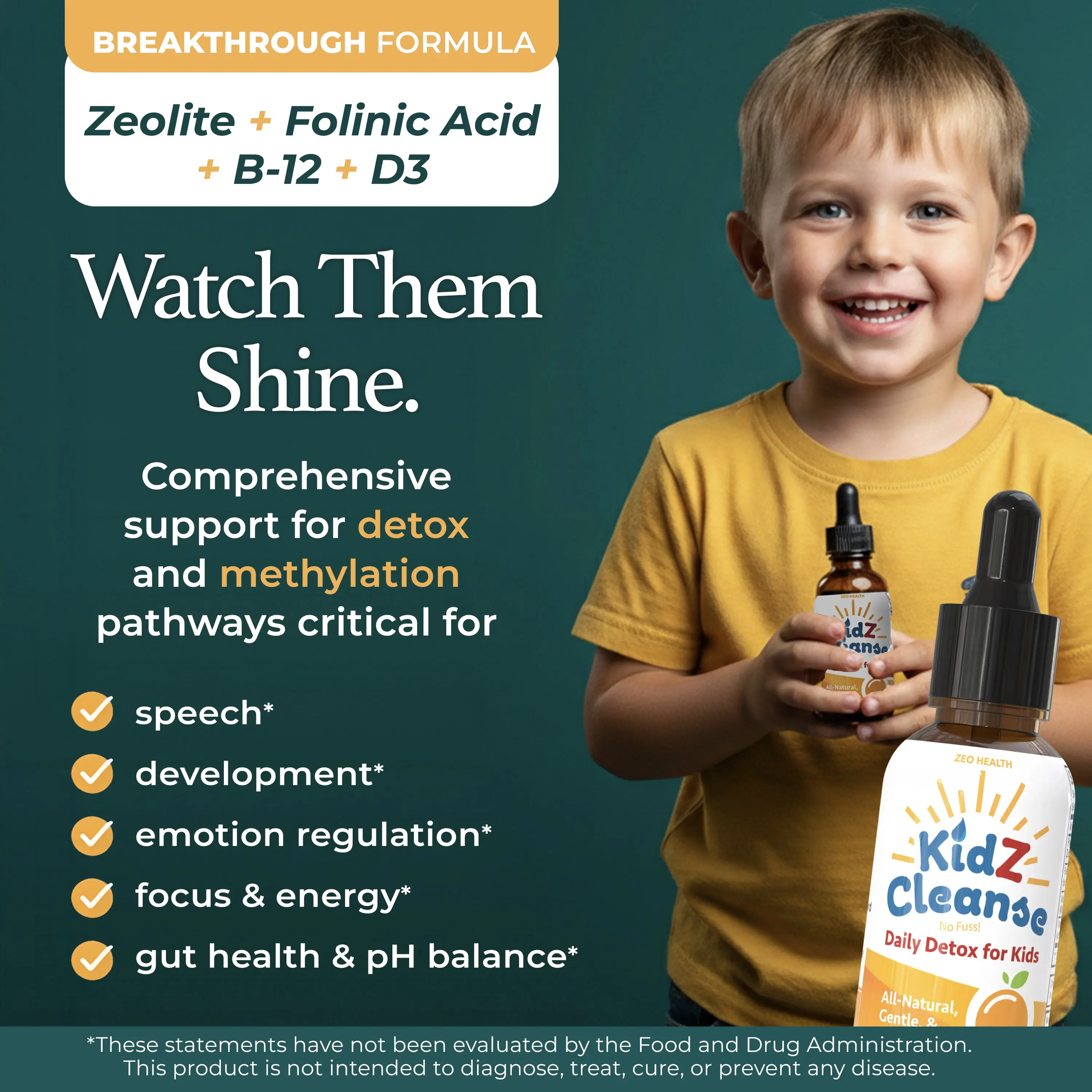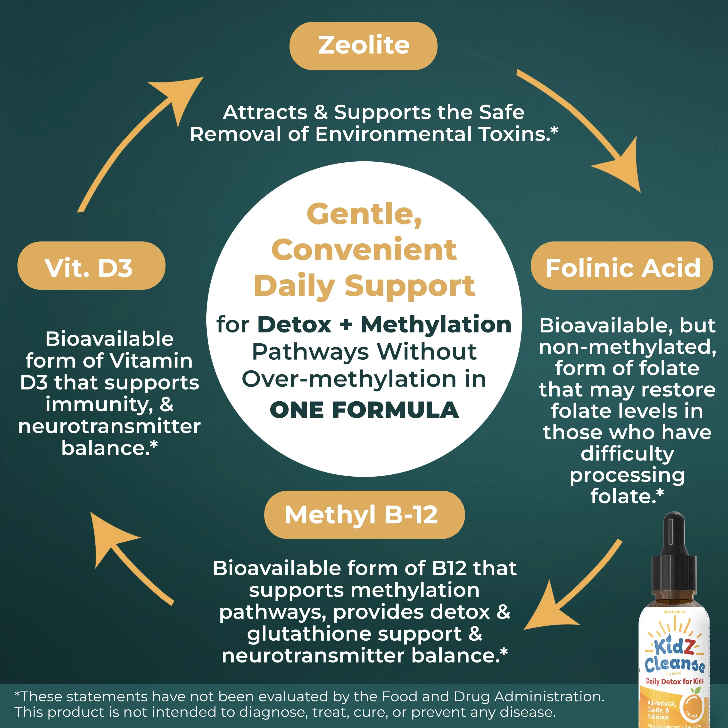 ·⭐ THE BREAKTHROUGH FORMULA - FIRST & ONLY: After 25 years of zeolite expertise, we've created what no one else has—the first kids' detox combining 6,000mg premium zeolite clinoptilolite with folinic acid (bioavailable folate), methyl B12, and D3. This isn't just detox; it's comprehensive support for methylation pathways critical to speech development, emotional regulation, focus, and cognitive function.