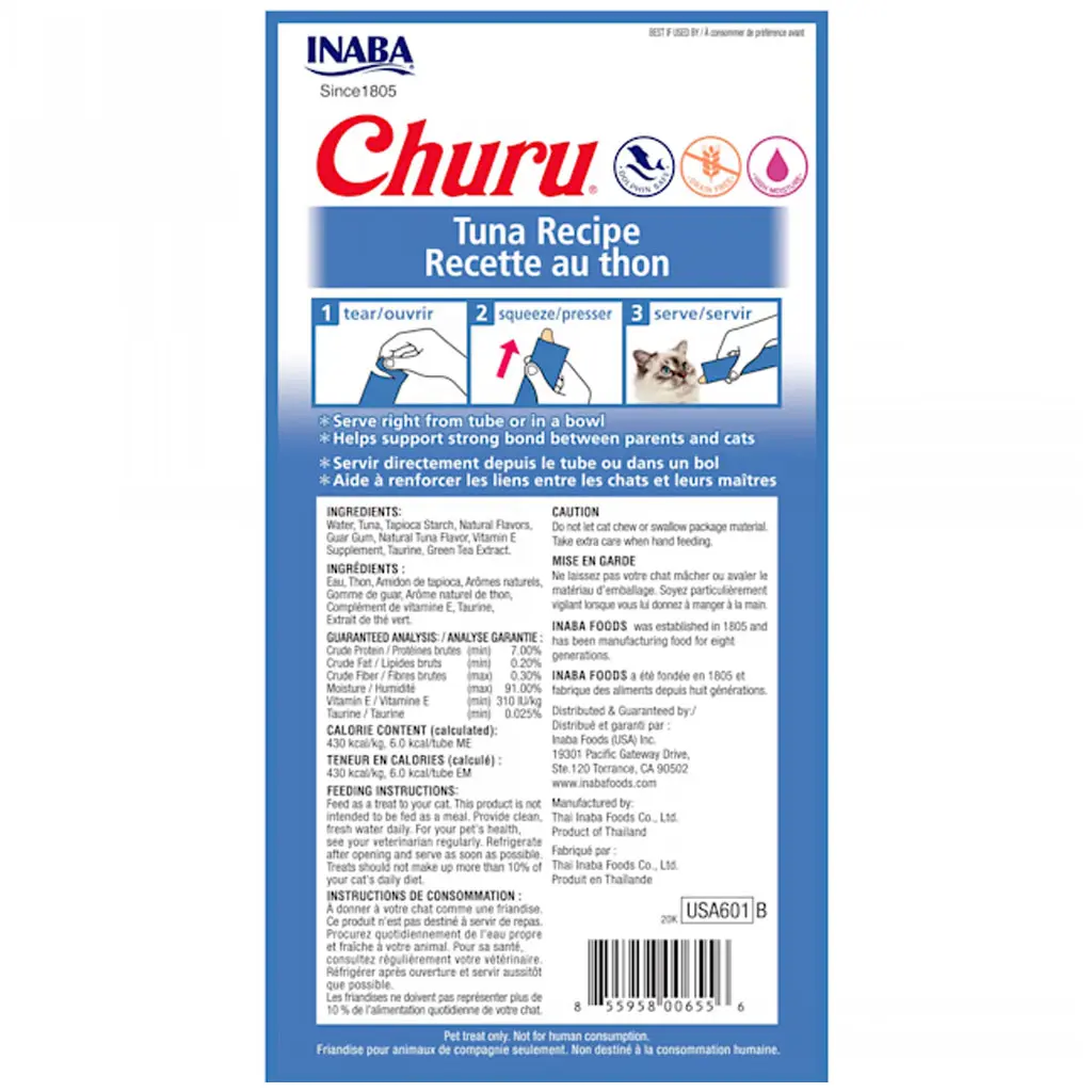 ·Treat Feeding: Feed the Churu grain-free tuna recipe pack as a treat only. Do not use it as a complete meal.