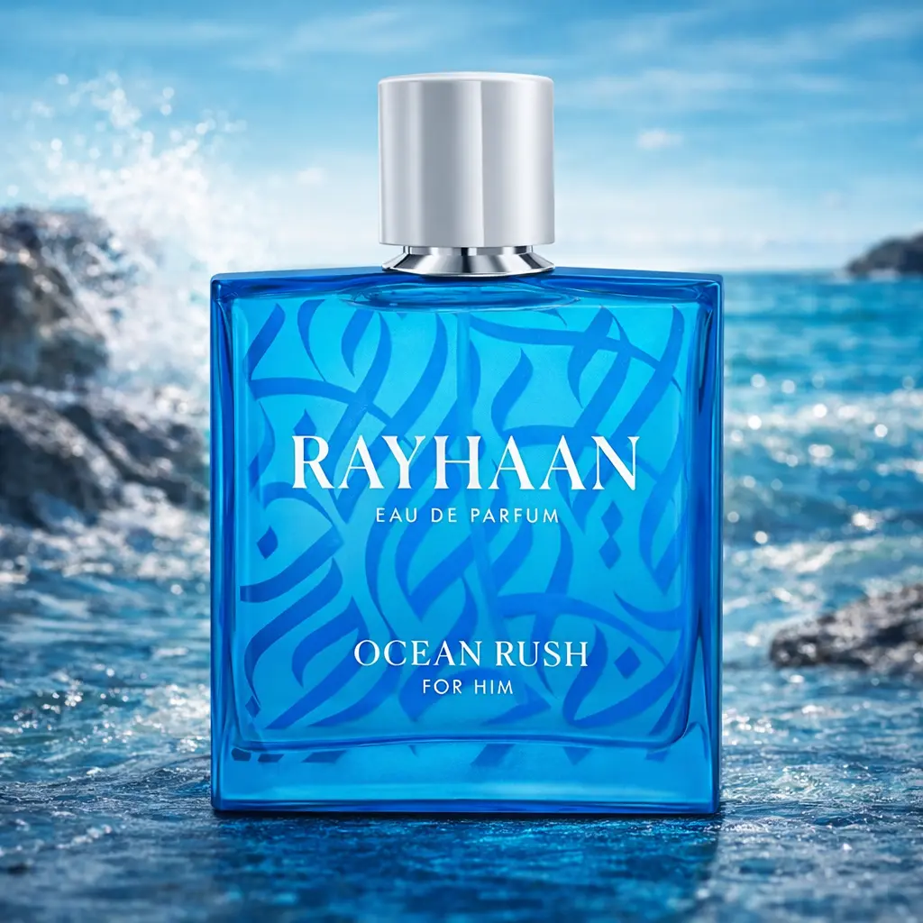 Rayhaan Ocean Rush Eau de Parfum is a dynamic scent designed to energize and define a bold, fearless presence. Zesty green mandarin delivers a burst of freshness, while aquatic aquazone introduces a crisp, oceanic character. Mineral amber enriches the composition with a refined and sophisticated depth. Ocean Rush is crafted for driven, unstoppable men who pursue their ambitions with confidence and unwavering determination.