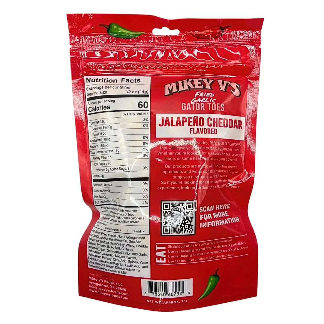 Whether you enjoy them on their own or add them as a topping to your favorite dishes, our Jalapeño Cheddar Gator Toes will definitely spice up your snacking game!