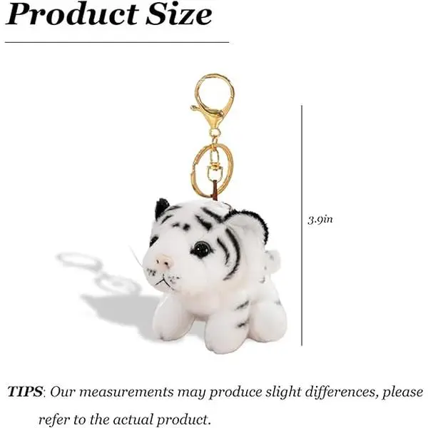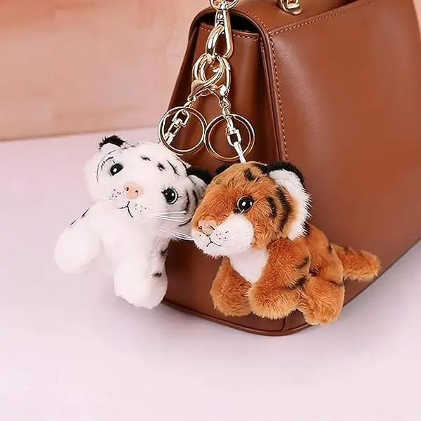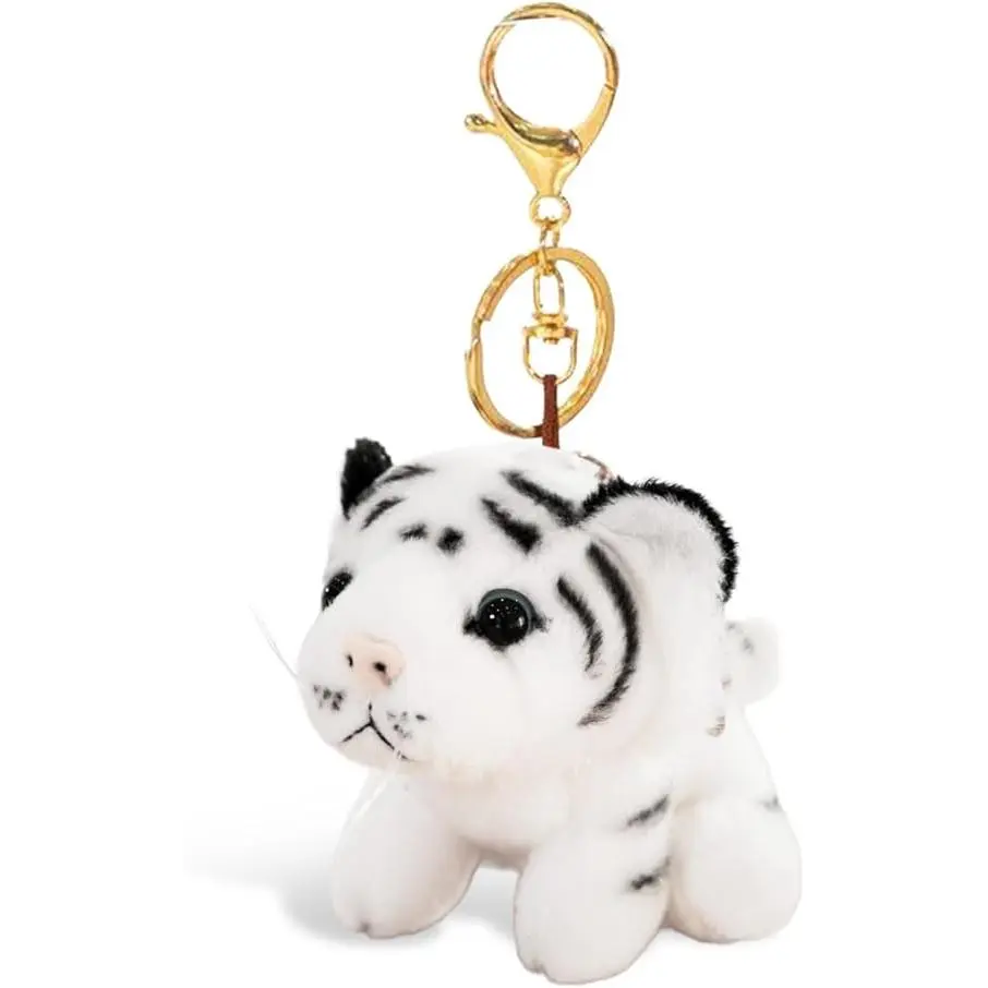 BloomWish S Tiger Keychain Cute Derpy Tiger Plush Keychain Yellow White Plush Bag Purse Charms for Handbags Animal Accessories