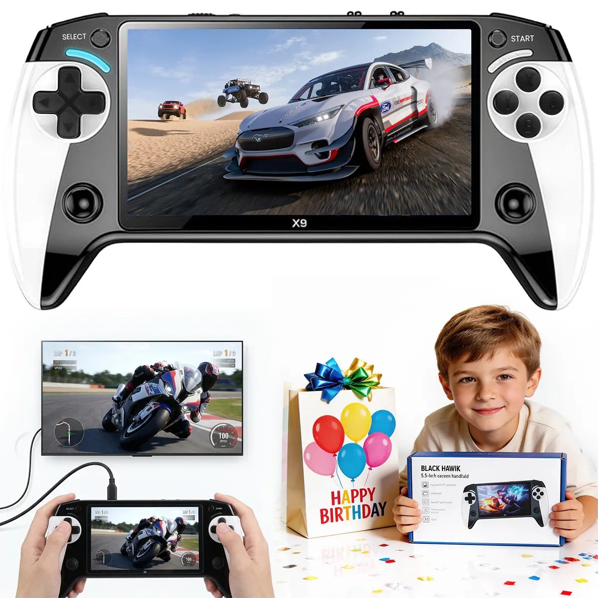 Portable Retro Game Console, 10 Emulator Support, Ultra HD Graphics Handheld Game Console, 5.5-Inch Large Screen, Ideal Gift for Birthdays, Father’s Day & Christmas, boys Box Compact game console retro game consoles gamer gifts