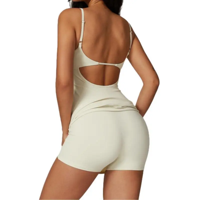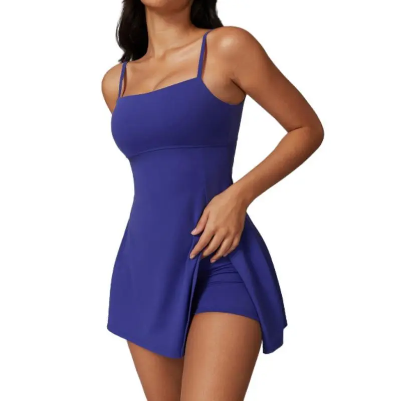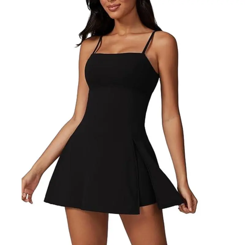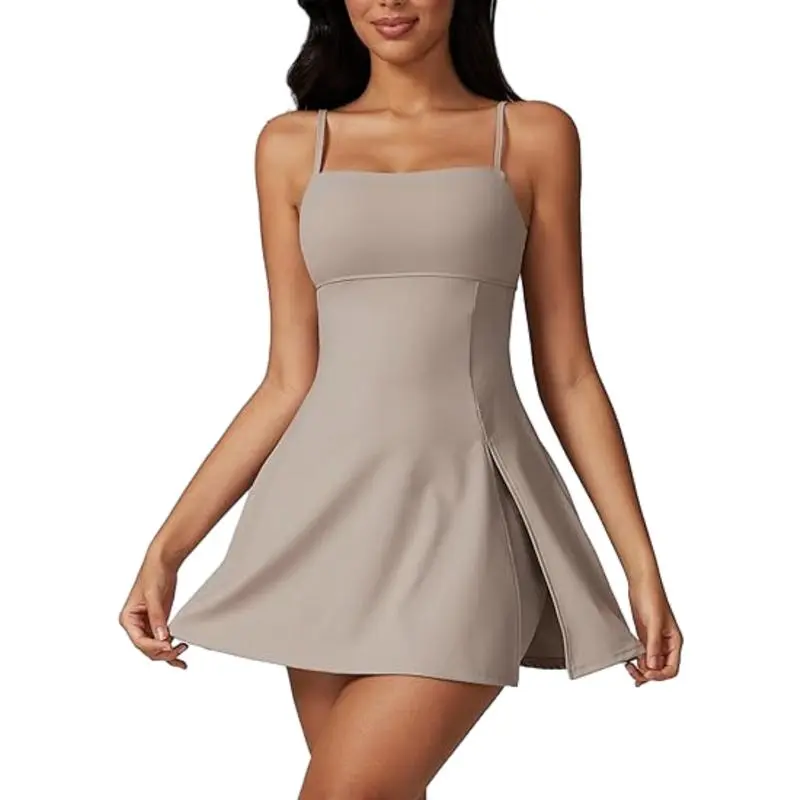 Womens Spaghetti Strap Tennis Dress with Shorts Workout Side Slit Active Golf Dresses sleeveless tennis solid backless Compression Garment Crop Top