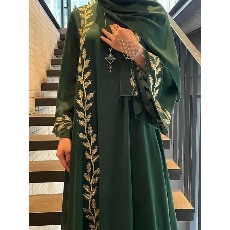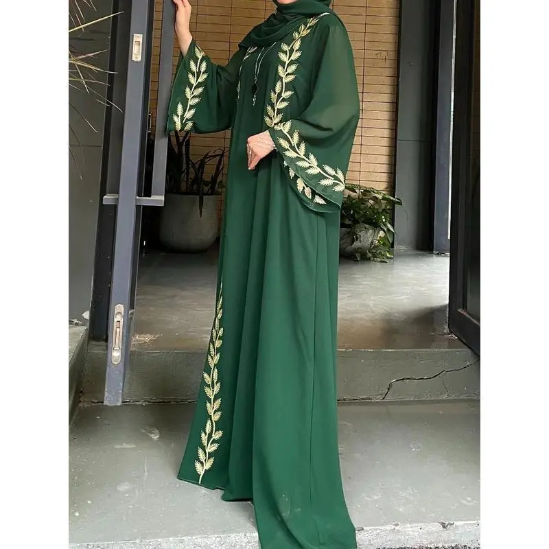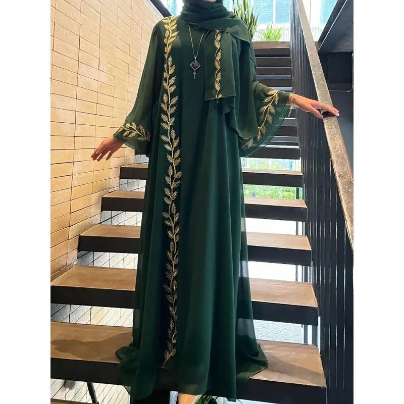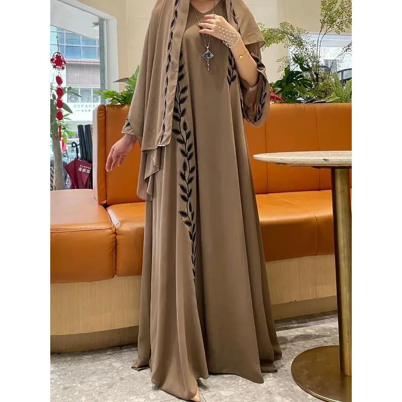 Eid Muslim Abaya for Women Embroidery Dress with Scarf 2 Piece Set Dubai Arab Long Robe Morocco Abayas Kaftan Headscarf Gorgeous