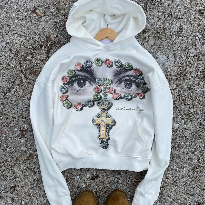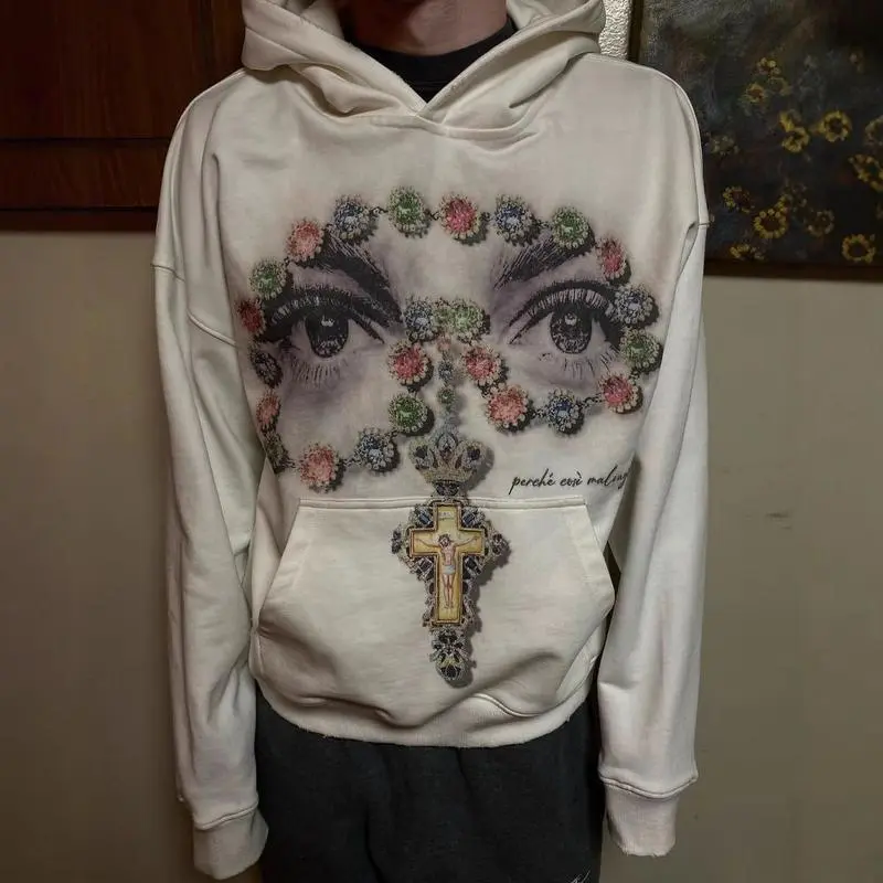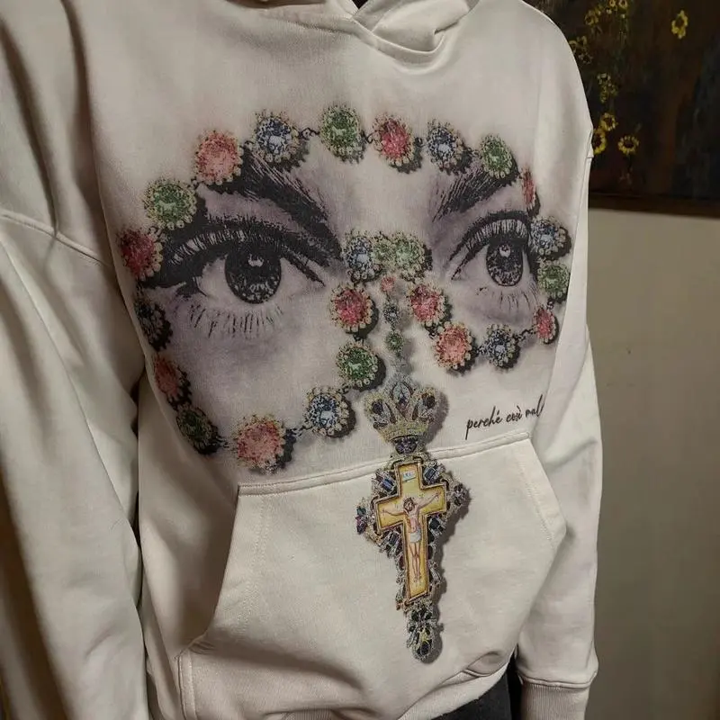TOPloosesweaterlong-sleevedpulloverhoodieretrojacketstreettrendEuropeanandAmericanpersonalizedprinting Polyester Sweatshirts��A gift with a random balue of $5