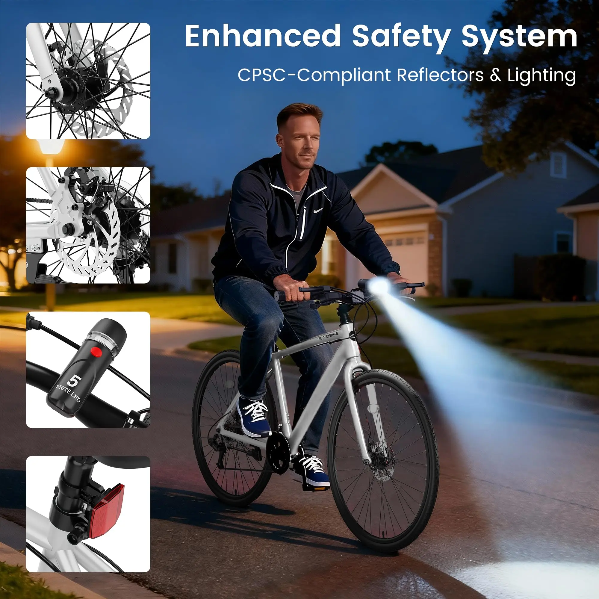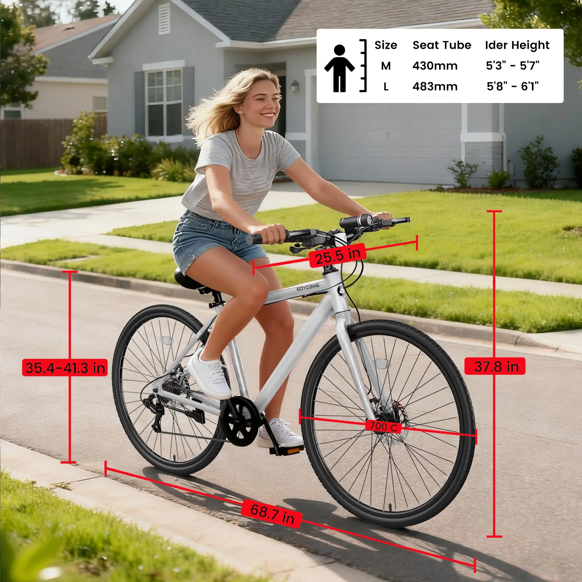 ·【High-Speed 700C & Disc Braking】 Large 700C(29inch) wheels provide exceptional rolling efficiency for faster, smoother commutes. Front & Rear Mechanical Disc Brakes offer dependable, immediate stopping power in wet or dry conditions.