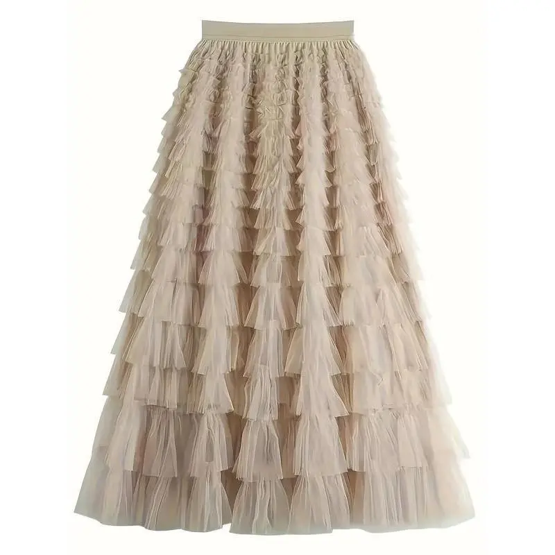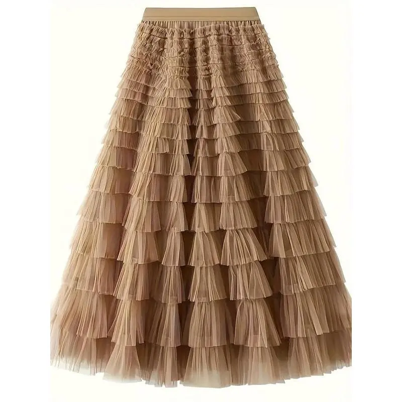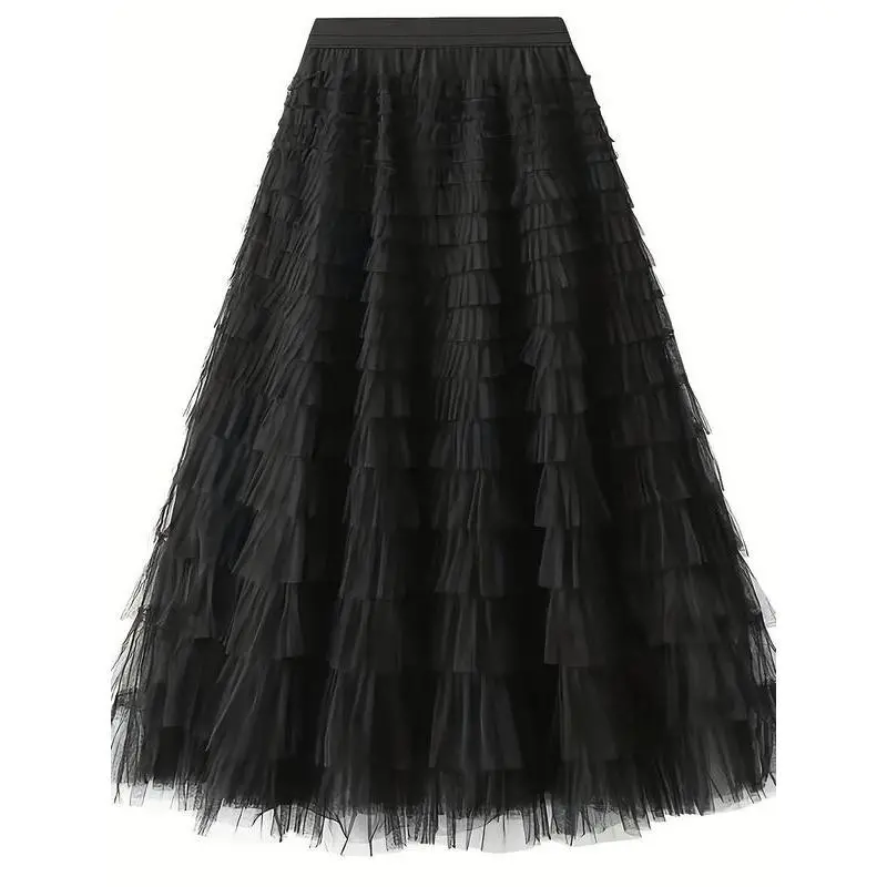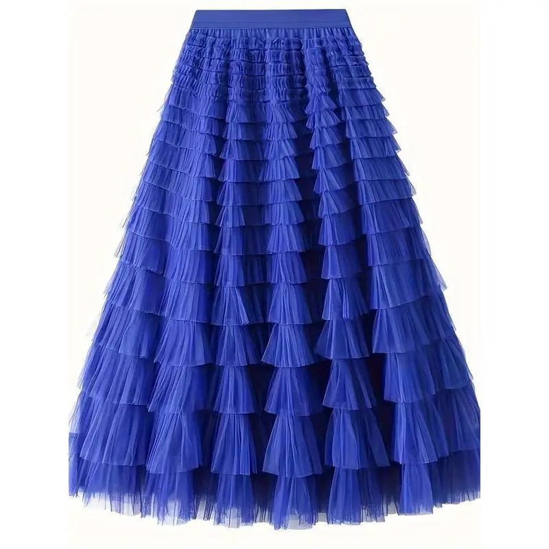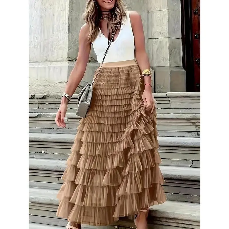 Women'sPlainRuffleHemTieredLayerSkirt,ElegantHighWaistLongSkirtforVacationHolidayParty,LadiesBottomsforAllSeasons,LongSkirtWomen