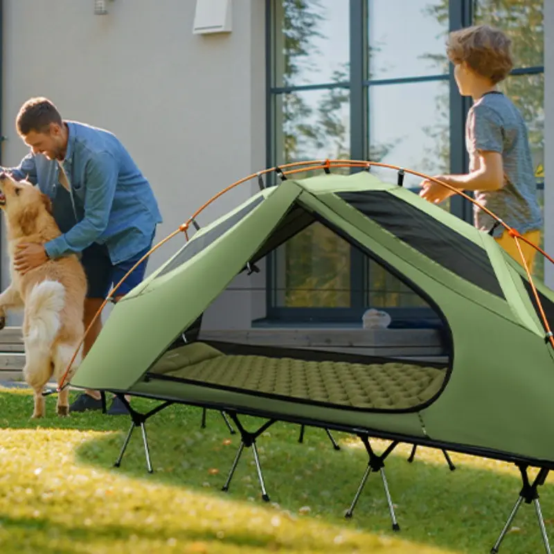 ·【Camping Cot Tent Combo】The package contains 2 items, the black carry bag contains the COT and the green carry bag contains the TENT. Pairing a elevated tent with a camping cot gives you more camping options! The waterproof fabric under the tent ensures a dry and comfortable place. Ripstop nylon fabric for greater durability.