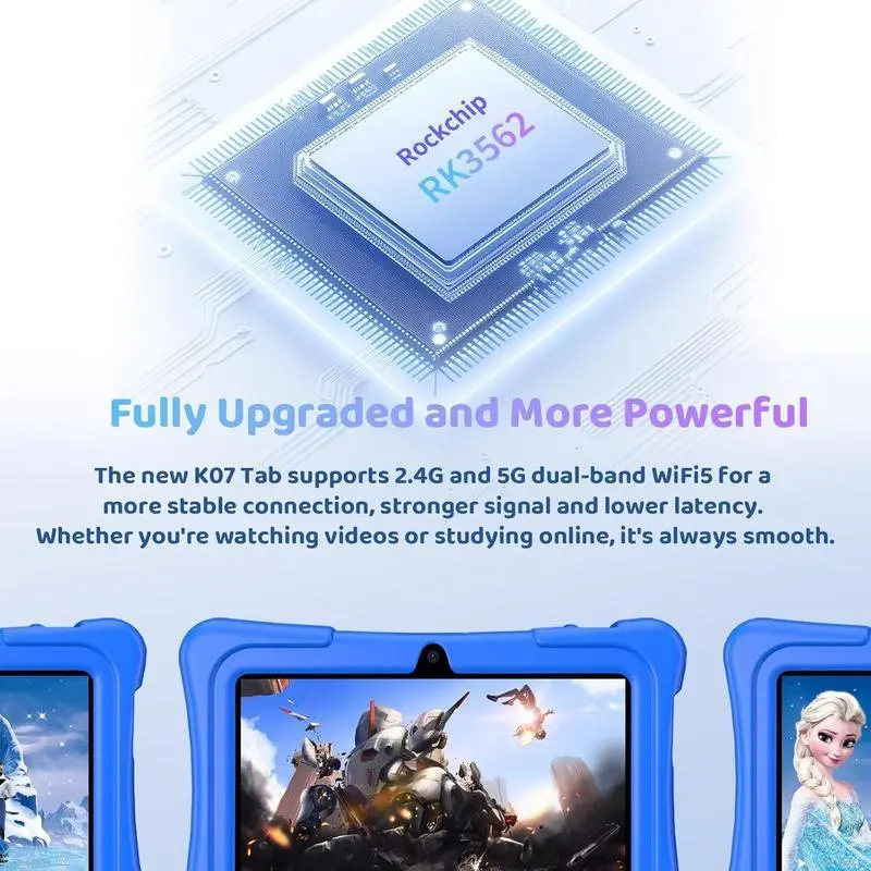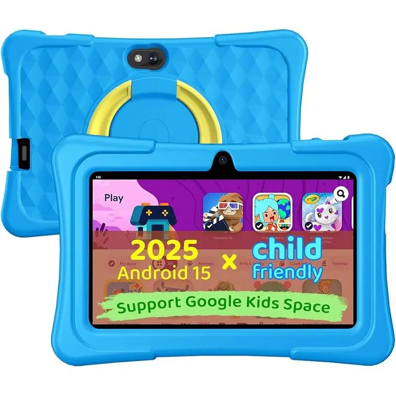 Safe Exploration - The aiprotablet Tablet comes with a parental control mode that allows you to filter content based on your's, set educational goals, and manage screen time limits, providing a safe environment for use without constant supervisionLearn Through Play - The tablet comes preloaded with the Space app, offering a wealth of-appropriate content. With a Wi-Fi connection and access to Play, parents can download educational apps for an engaging and interactive learning experienceSmooth Performance - The Android Tablet comes with a 1024x600 IPS touchscreen, Android15 OS(Not GO), RK3562 quad-core processor, 8GB memory (3GB + 5GB virtual), 32GB of flash memory, and a micro SD card slot to store everything you need. Powerful Features - The new 7 inch tablet supports 2. 4GHz and 5GHz WI-FI for a more stable connection and faster loading speeds. It also includes Bluetooth 5. 0, dual 2MPl front and rear cameras, and an FM radio. The upgraded battery provides hours of useDurable Design - The children tablet comes with a soft and durable silicone case that resists accidental drops, bumps, and scratches for reliable protection. The rotatable stand allows the tablet to be placed vertically or horizontally, ensuring your’s comfort during use.