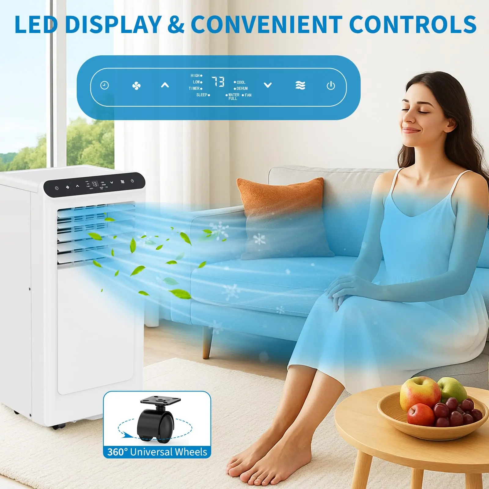 【Portable & Easy to Install】 Comes with wheels and a complete window kit for quick setup and effortless room-to-room mobility. This portable ac can be installed in minutes without special tools or professional help