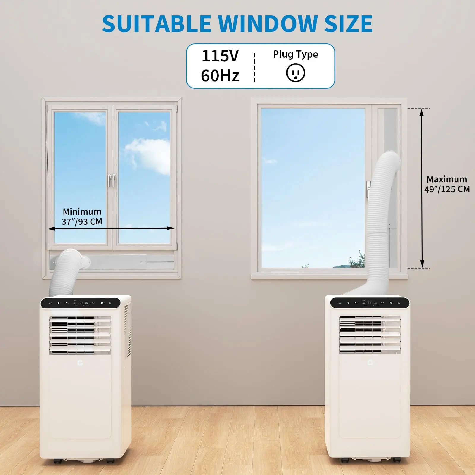 【Portable AC Unit for Every Room】 The included complete window mount exhaust kit ensures a secure and efficient setup for this portable ac, allowing you to start cooling in no time. Designed for hassle-free portability, its rolling wheels make it easy to move from room to room, bringing comfort wherever you need it