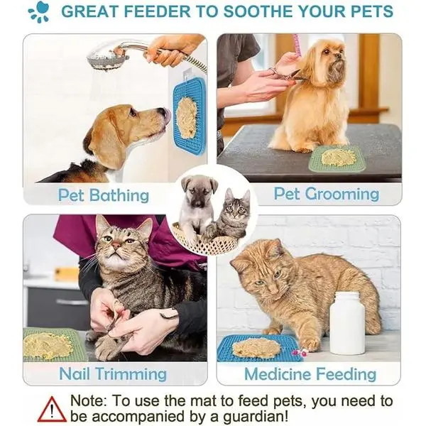 ·【Alleviates Anxiety and Prevents Destructive Behavior】The licking pads help soothe and calm pets, acting as a boredom reliever for dogs to curb destructive tendencies and ease anxiety when left alone at home. This dog treat mat is ideal for stressful situations such as vet visits, bath time, nail clipping, injury recovery, as well as during thunderstorms and fireworks