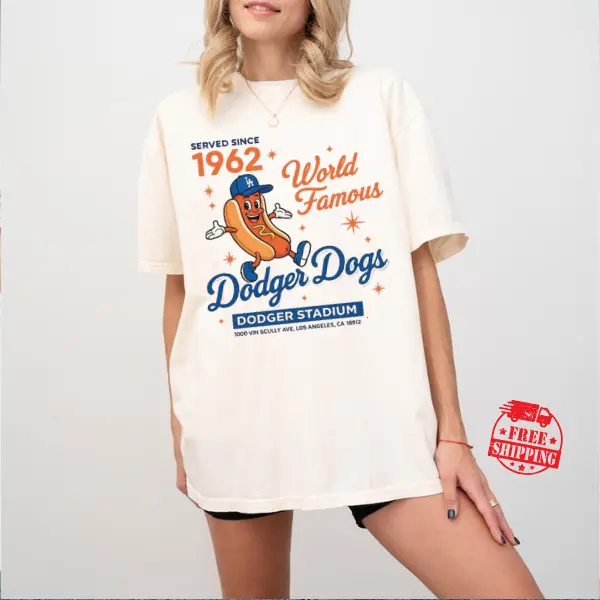 [Sale up to 50%] [Free Ship] Comfort Color Dodger Dogs World Famous 1962 Stadium Tee, Retro Ballpark Hot Dog Shirt