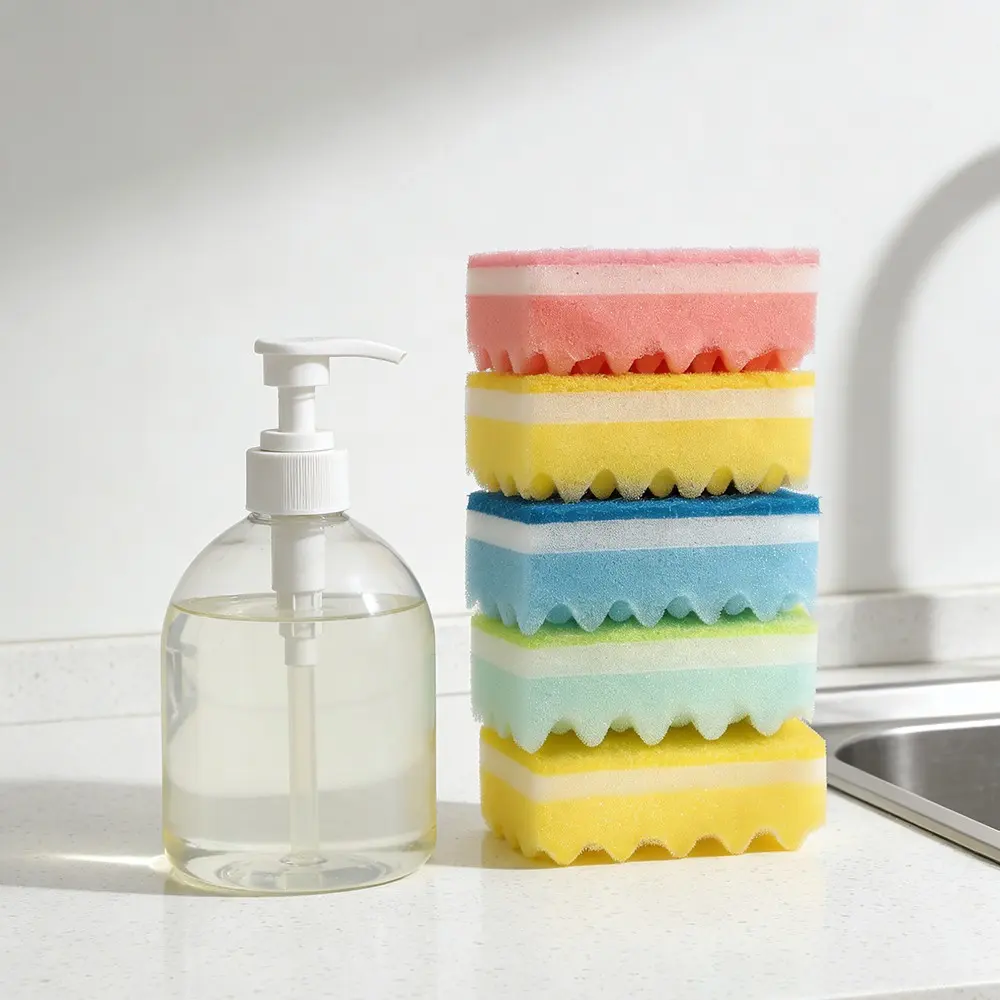 Wave Edge Cleaning Sponge Set, Soft Non-Scratch Kitchen Sponges, Deep Clean Oil Stains, Simple Fresh Design, Daily Household Use