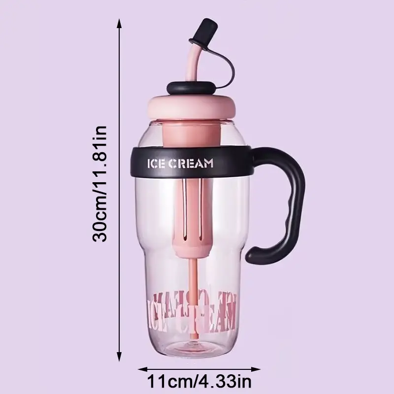 1300ML Large Capacity Water Cup, Big Handle, Tea Strainer and Straw Included, Cute Dustproof Design, Summer Suitable for Women and Students