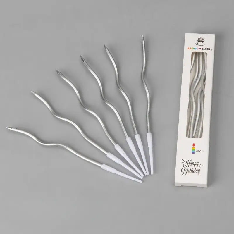 6Pcs/Box Spiral Twisted Birthday Cake Candles - Curved Gold/Silver Metallic Cake Toppers, Elegant Arch Candles for Birthdays, Weddings, Festivals & Party Decorations