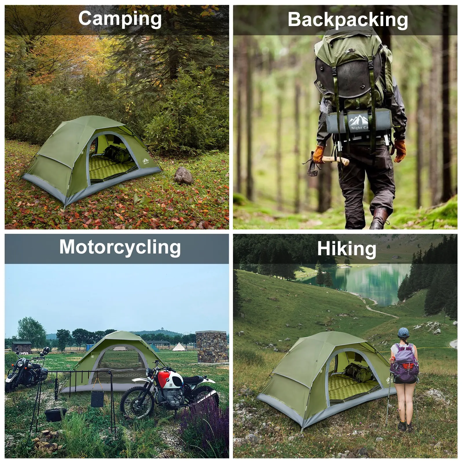 ·【Spacious Tent Size 】Roomy space for One Two Three Four persons as your demands, fits well with Night Cat single sleeping air pads, Night Cat double air mattress, Night Cat sleeping bag. Ideal tent for family camping or backpacking