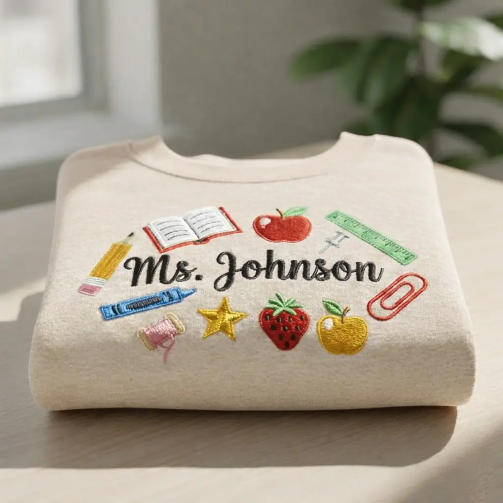 Personalized Embroidered Teacher Sweatshirt, Custom Name, Teacher Appreciation Gift