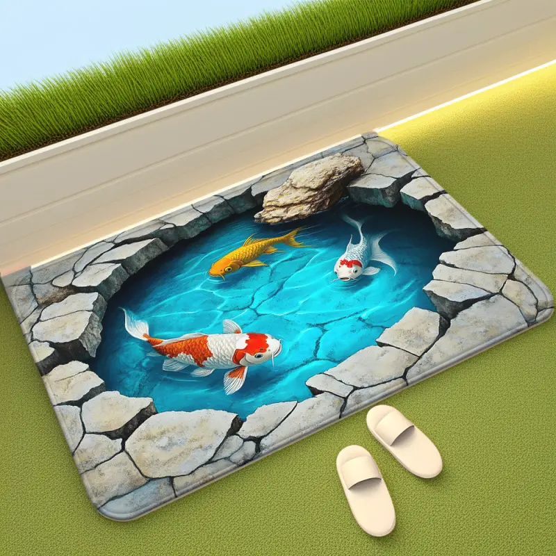Lucky Koi Fish 3D Mat - Non-Slip & Absorbent 3D Koi Fish Pond Rug - Realistic Visual Illusion Mat