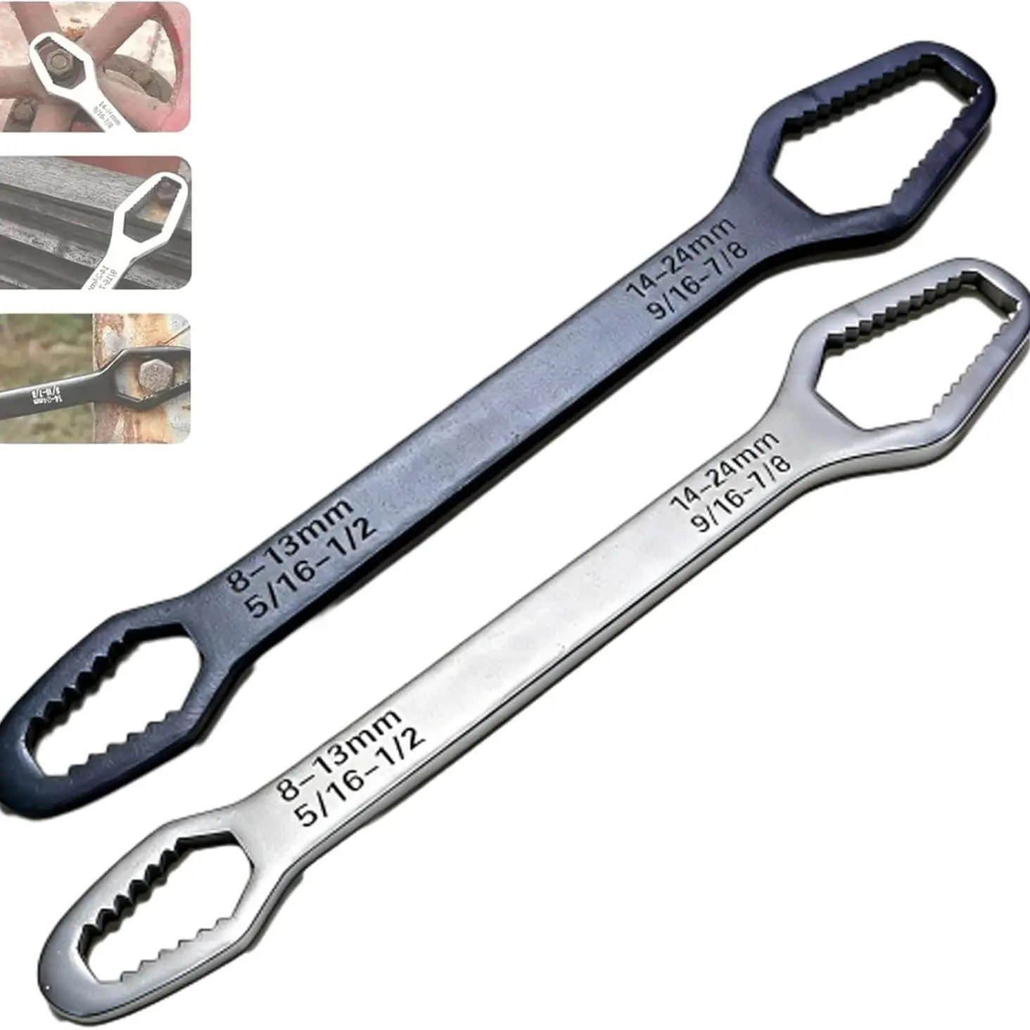 Easy and Safe Operation:The ergonomic design and precise fit provide superior grip and torque control. The 8-24mm range allows users to tackle a variety of fasteners safely and efficiently. Self-tightening ends minimize slipping and damage, making it a dependable tool for both beginners and experienced users