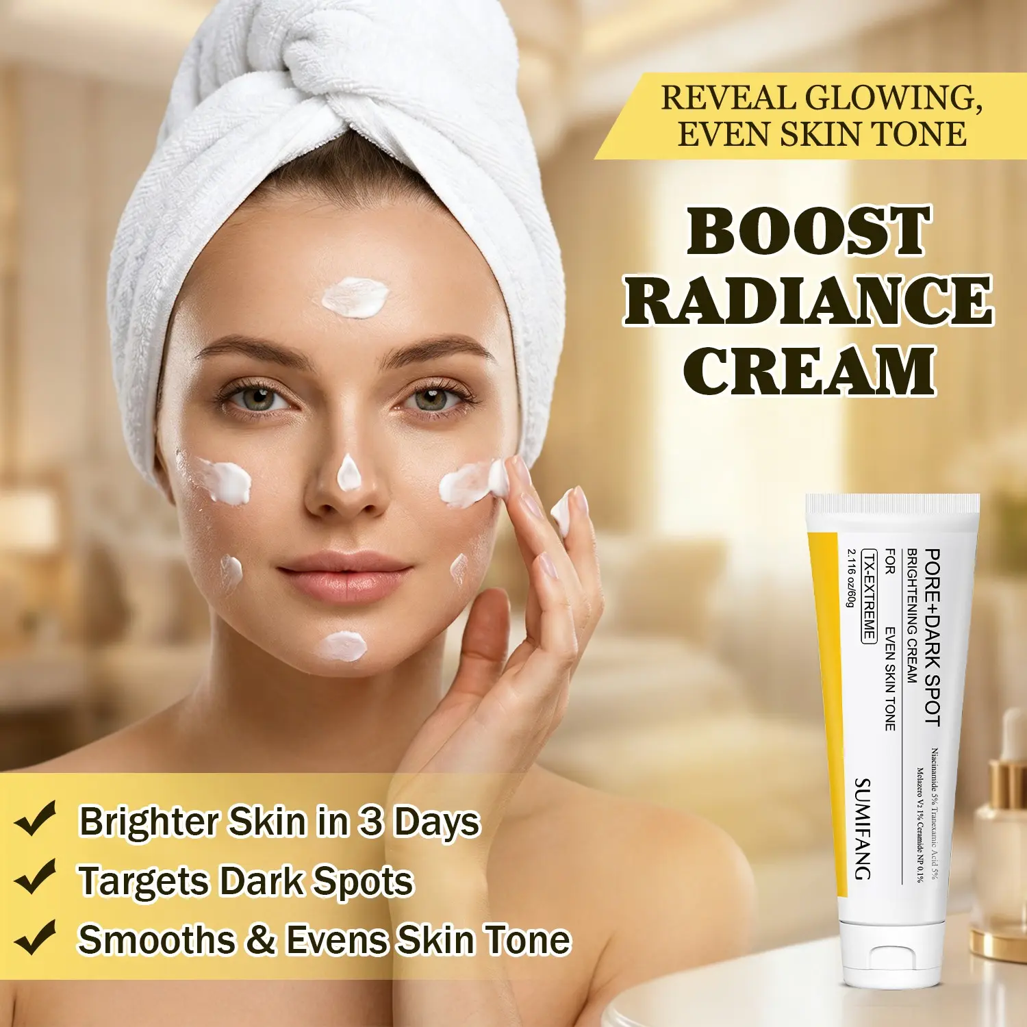 Gentle Radiance Cream, Smooth and Moisturizing, Niacinamide Brightening, Strengthening Repair, Hyaluronic Acid Gentle Care, Suitable for All Skin Types