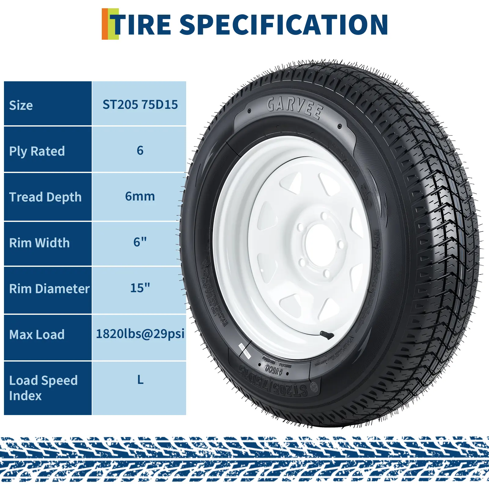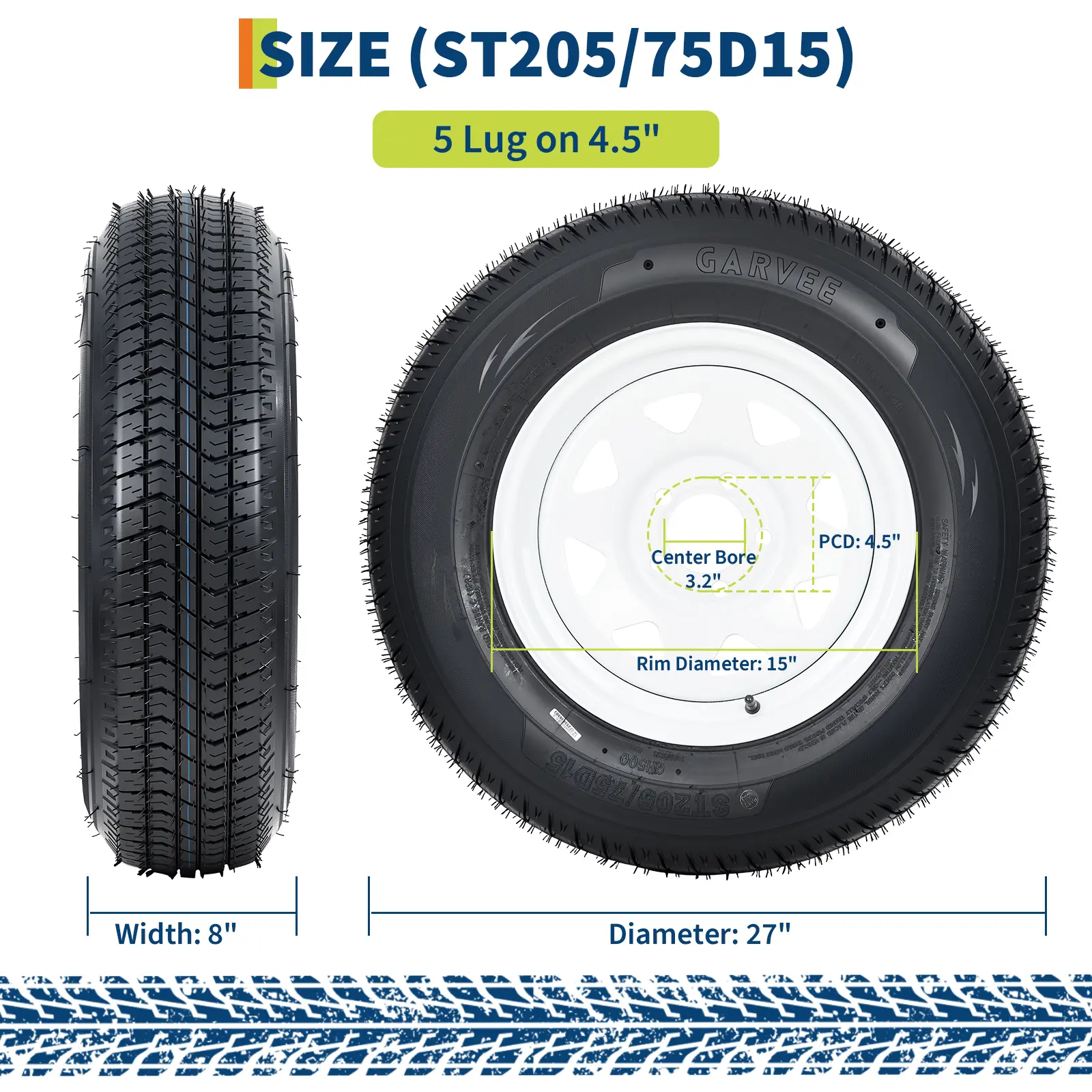 Speed Rating: M | Load Index: 71 | Max PSI: 90 | Max Load: 760 lb | Outer Diameter: 16.6" | Section Width: 5.08" | Rim Size: 8x3.75" | Bolt Pattern: 5 on 4.5"