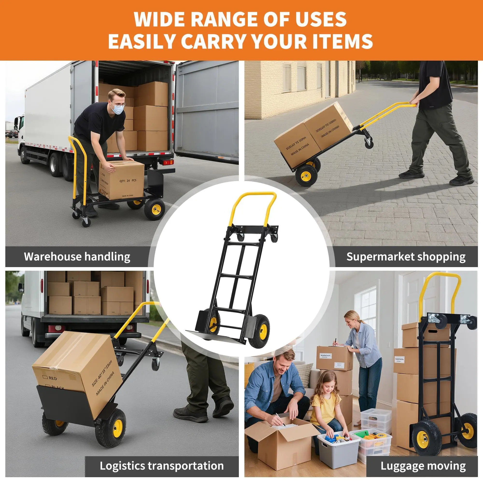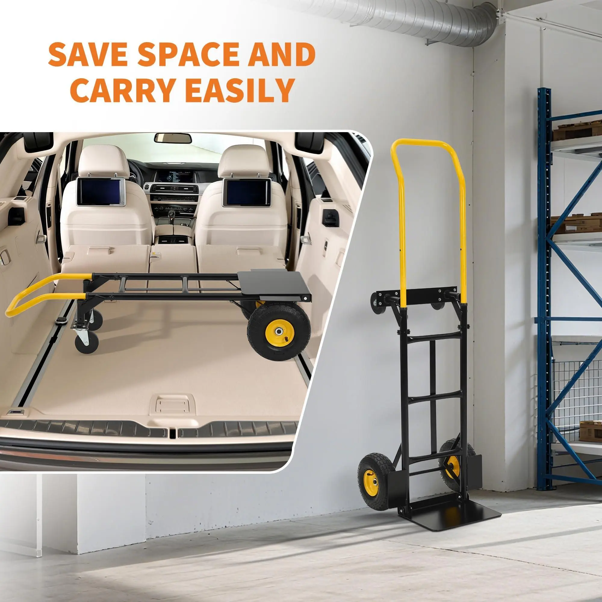 Ultimate Versatility as a Stair-Climbing & Multi-Purpose Cart: From warehouses and retail spaces to home moves and DIY projects, this hand truck dolly adapts to any scenario. Use it as a stair climbing hand truck, stair climber cart, or platform trolley—combining extreme strength, smart folding design, and unmatched versatility for handling stairs and beyond.