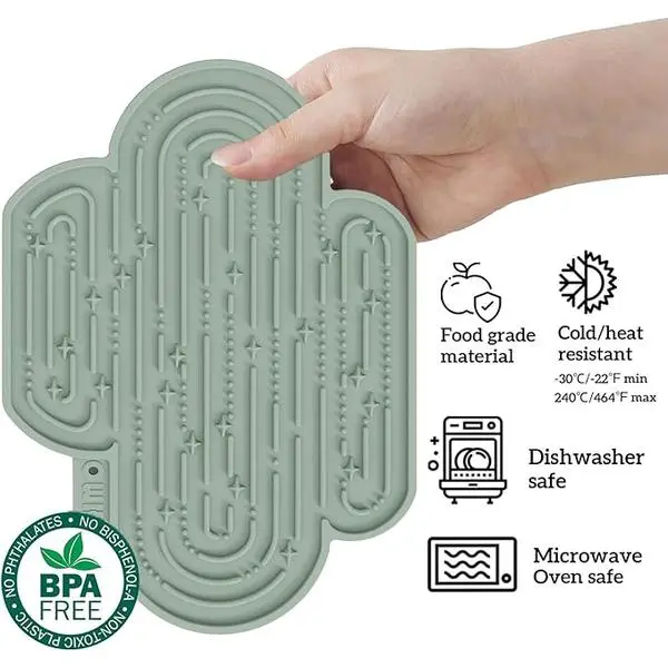 Conclusion:The OHMO-Cactus Lick Mat for Dogs and Cats is a versatile and nourishing delight that enhances digestion, dental hygiene, and provides enrichment for your beloved pets. Made from premium food-grade silicone, it is easy to clean and ensures steadfast stability with its robust suction cups. Ideal for a variety of pet foods and room decoration.