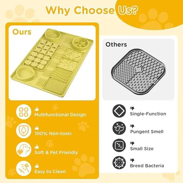 ·The slow food area with diverse textures prevents dogs from swallowing in big gulps. It helps digestion and relieves anxiety during bathing, grooming, or licking alone. 🐶