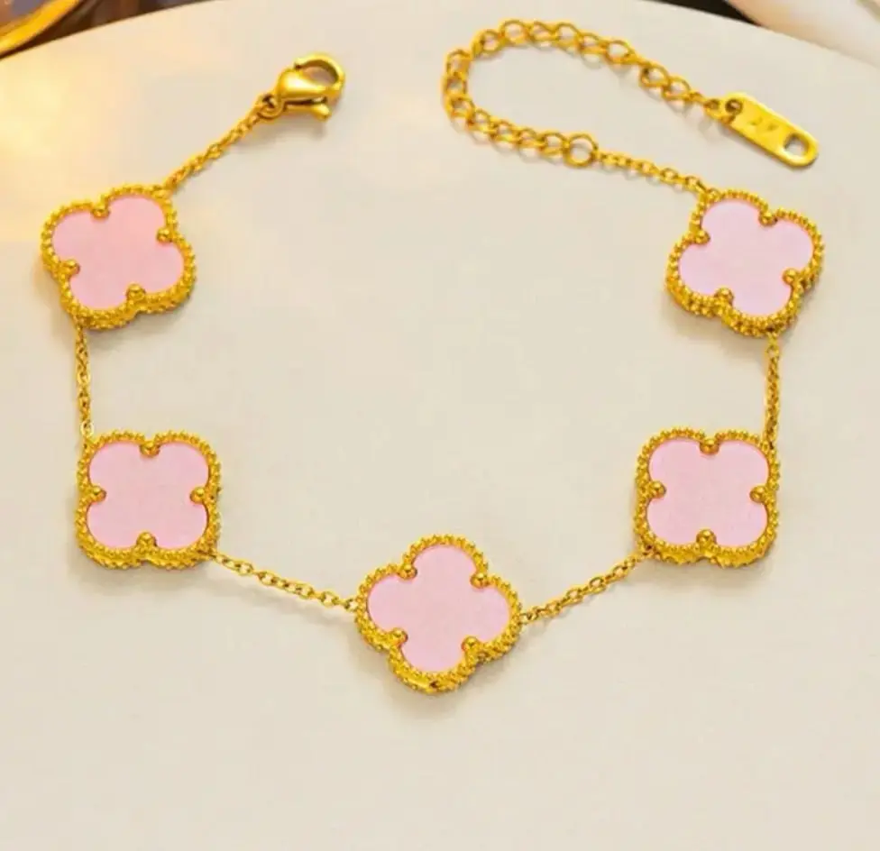 PAVOI 14K Gold Plated Clover Bracelets for Women - Flower Four Leaf Clover Bracelet - Mother of Pearl & Onyx Gemstone Lucky Flower Design - Adjustable Trendy Jewelry Gifts