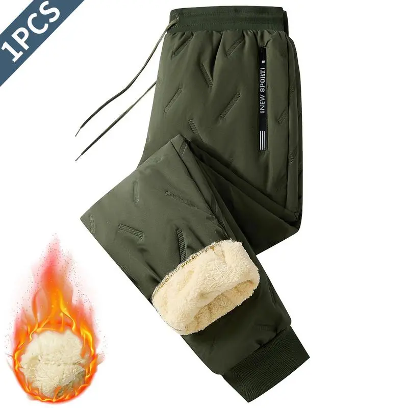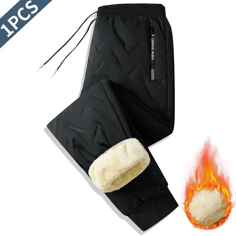 Men's Winter Warm Fleece-Lined Pants Outdoor Sports Camping Straight-Leg Hiking Pants Thickened Warm Waterproof Windproof Pants, Men's Casual Waist Drawstring Sports Pants with Pockets, Featuring Geometric Patterns, Suitable for Skiing and Hiking
