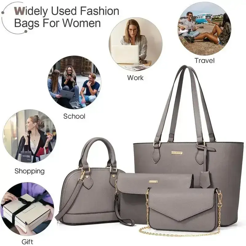 This stylish and practical purse set is designed to meet all your needs.It can be used as a handbag, crossbody, shoulder bag, or tote, making it perfect for any occasion-dating, shopping, work, travel, or parties. Fashionable & Durable Design Crafted from high-quality synthetic leather, this purse features smooth stitching, a sturdy structure, and a soft, wrinkle-free finish.It’s eco-friendly, odor-free, and maintains its shape over time. Built to Last Upgraded with reinforced straps, non-slip zippers, and premium gold-tone hardware, this bag is both durable and elegant.The flat bottom studs and tear-resistant lining ensure long-lasting use. Spacious & Functional The large tote fits a 14-inch laptop and A4 documents, while the medium crossbody bag is perfect for sunglasses, cosmetics, and more. Multiple pockets keep your organized. The Perfect Gift This purse set makes an ideal gift for birthdays, anniversaries, Valentine’s Day, Mother’s Day, or Christmas.It’s a thoughtful and practical present your loved ones will cherish.
